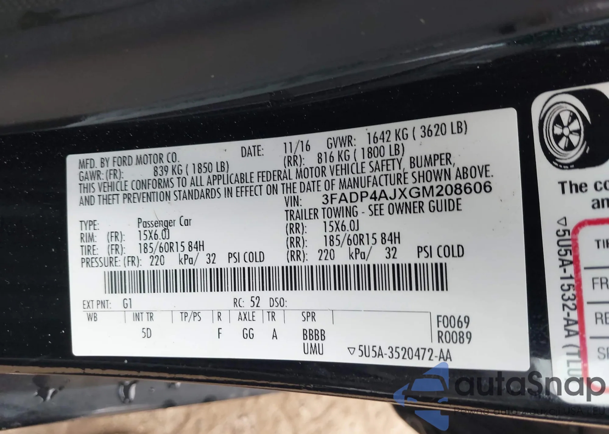 LOT: 43926691 VIN: 3FADP4AJXGM208606