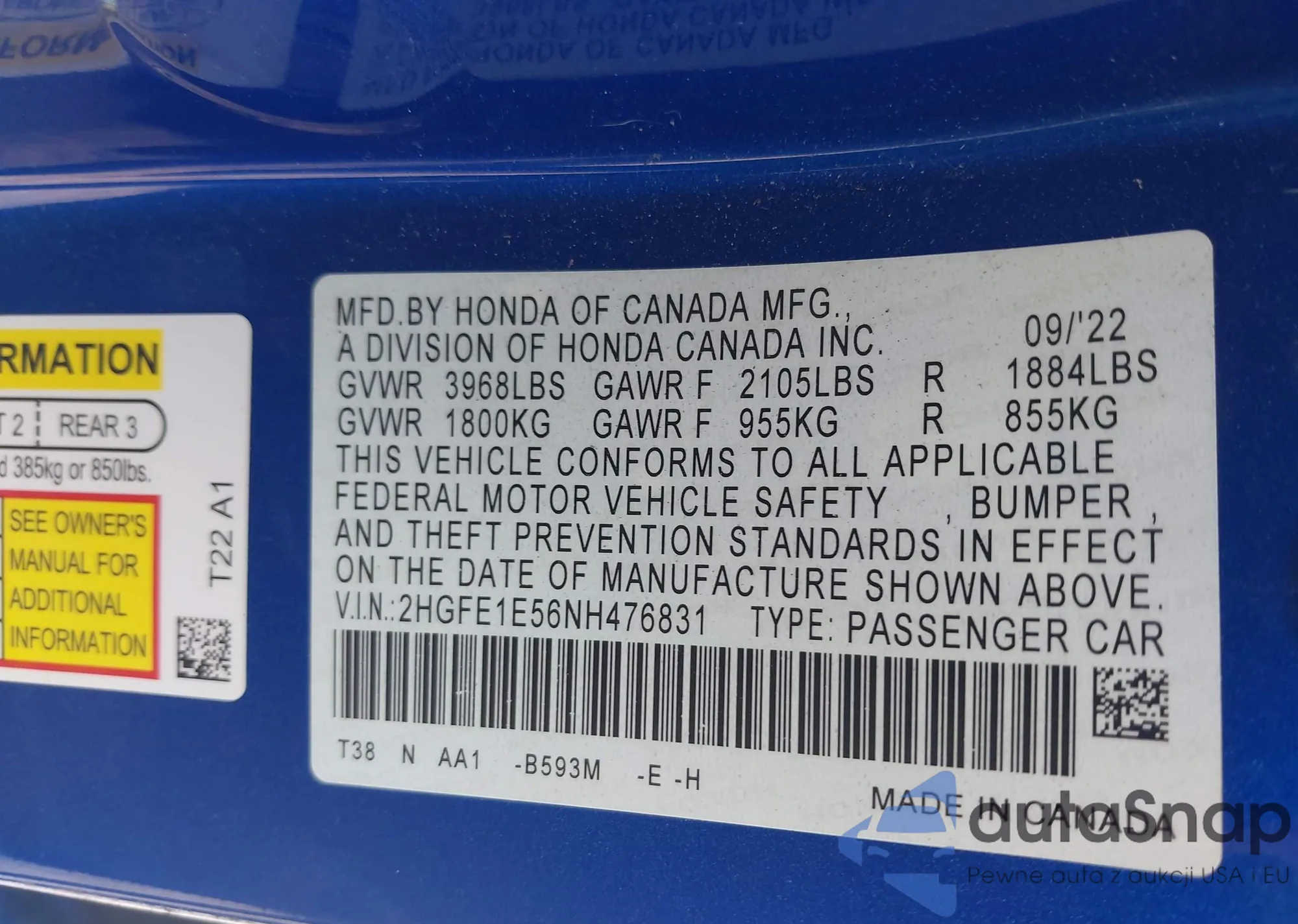 • VIN 2HGFE1E56NH476831