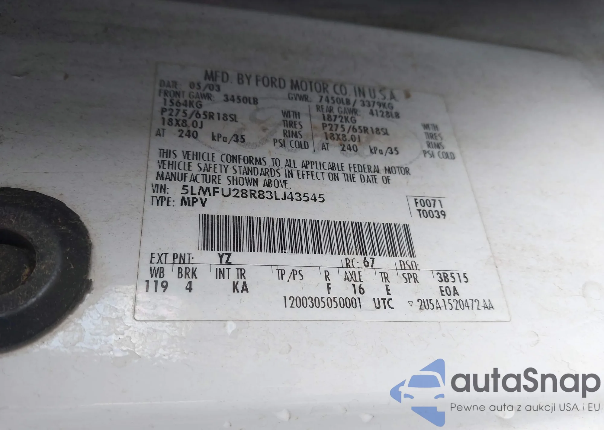 LOT: 44046038 VIN: 5LMFU28R83LJ43545