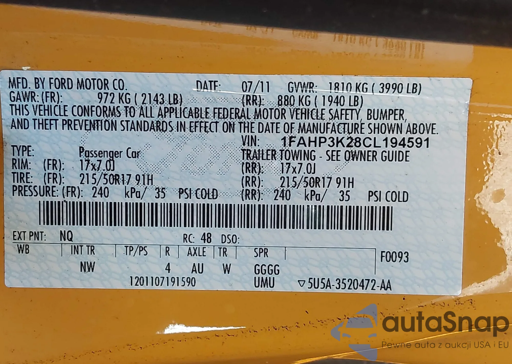 • VIN 1FAHP3K28CL194591