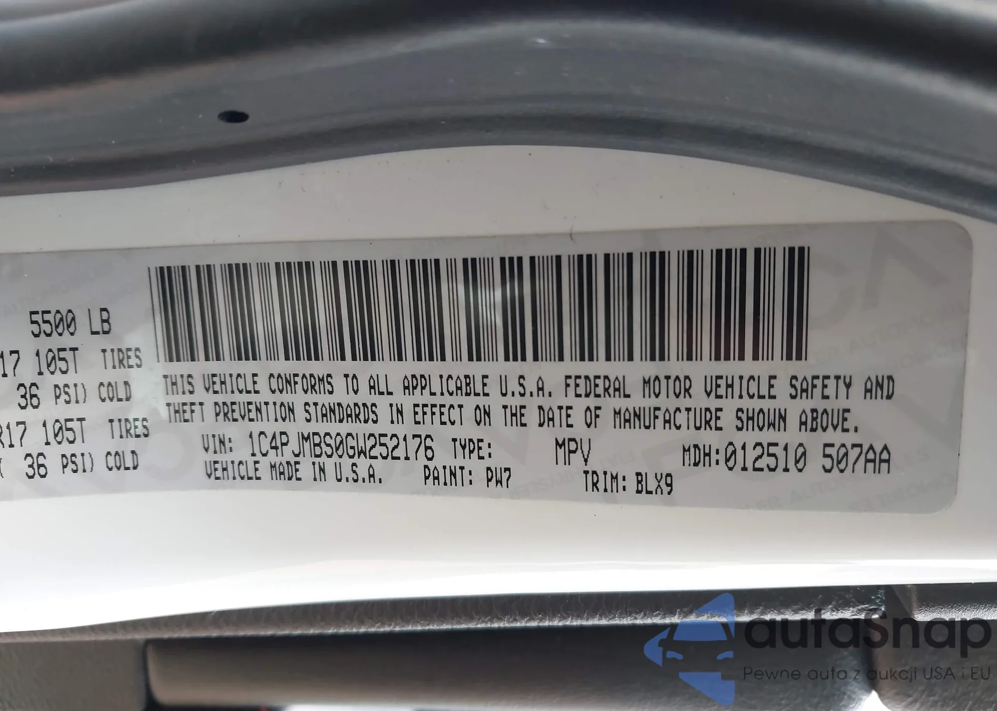LOT: 43997519 VIN: 1C4PJMBS0GW252176