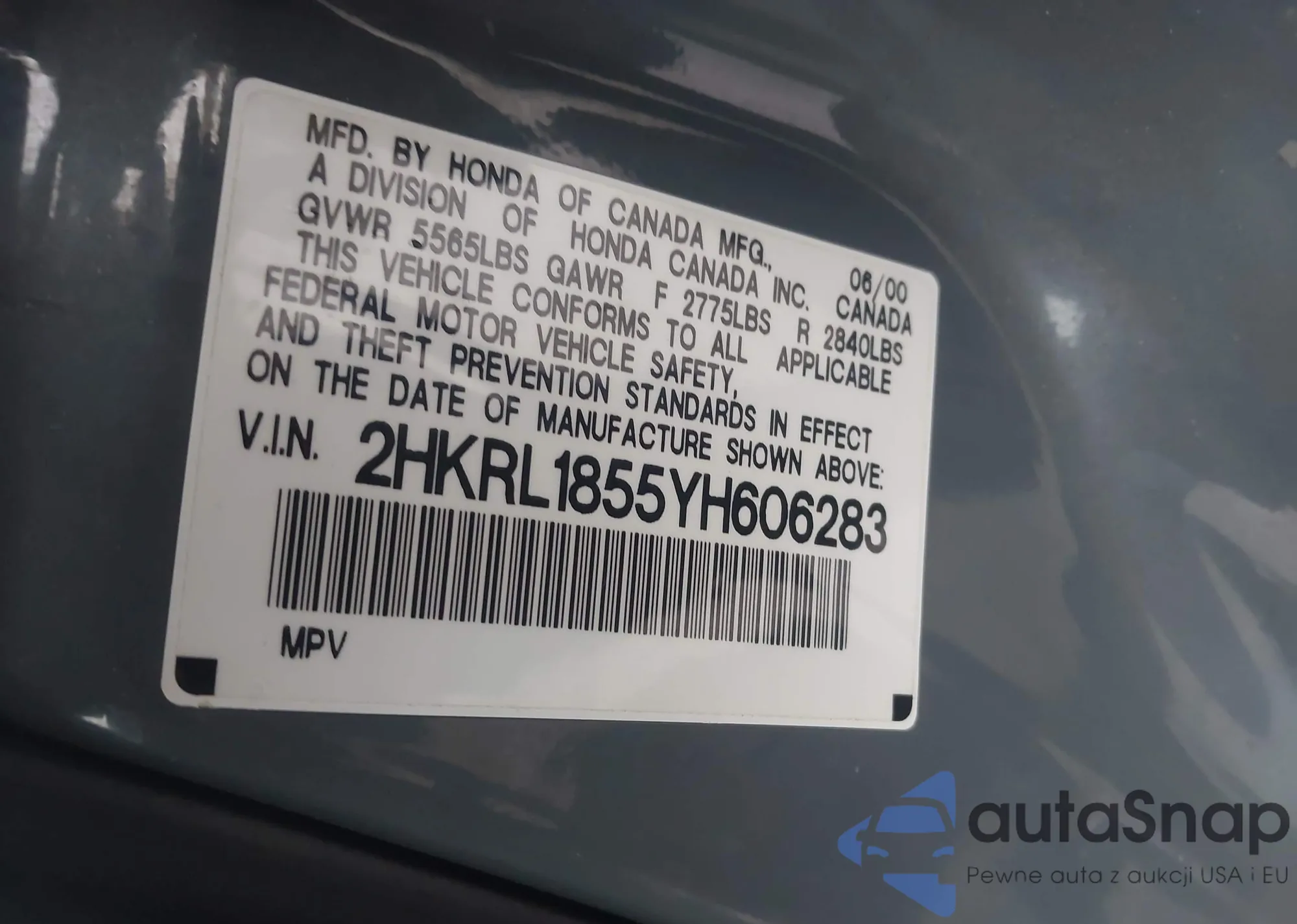 LOT: 44071060 VIN: 1HGES16562L035914