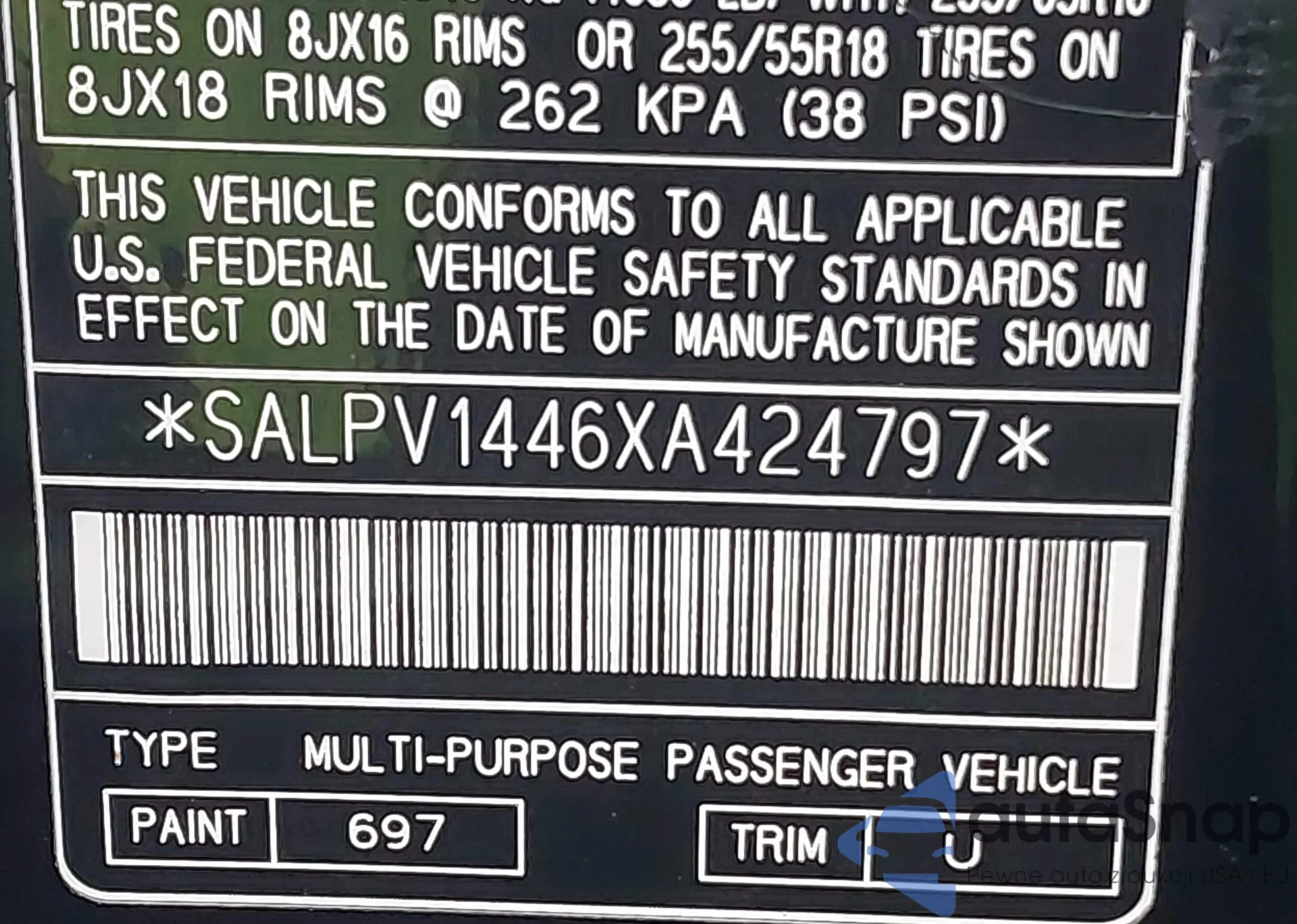 • VIN SALPV1446XA424797