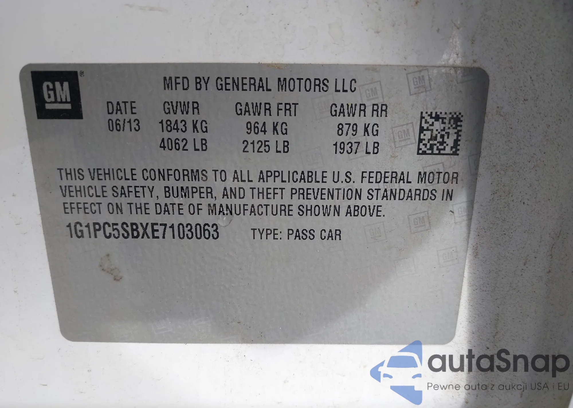 LOT: 44071983 VIN: 1G1PC5SBXE7103063