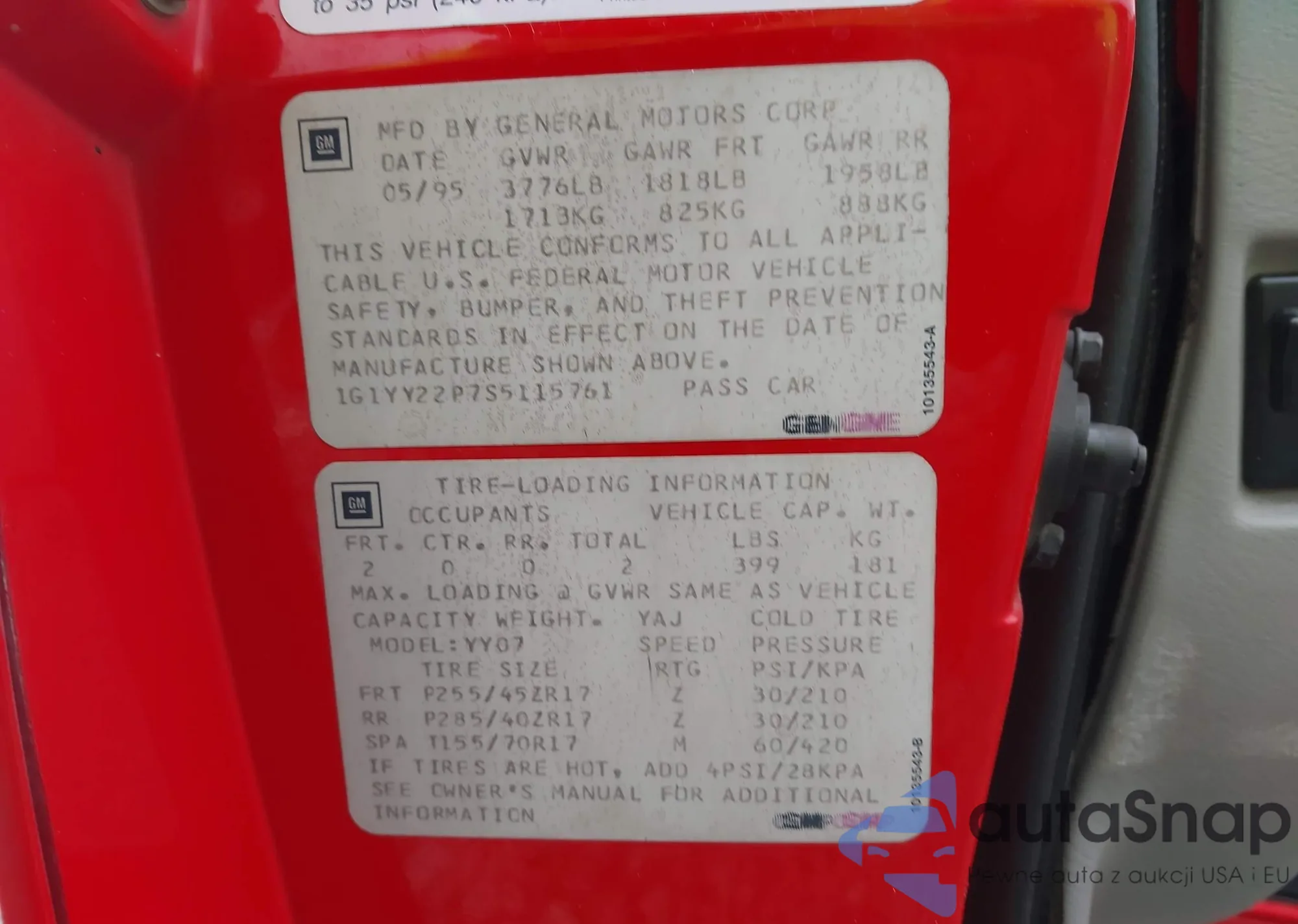 • VIN 1G1YY22P7S5115761