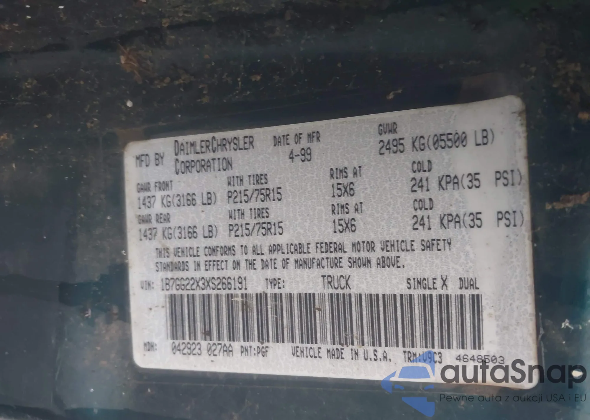 LOT: 44076348 VIN: 1B7GG22X3XS266191