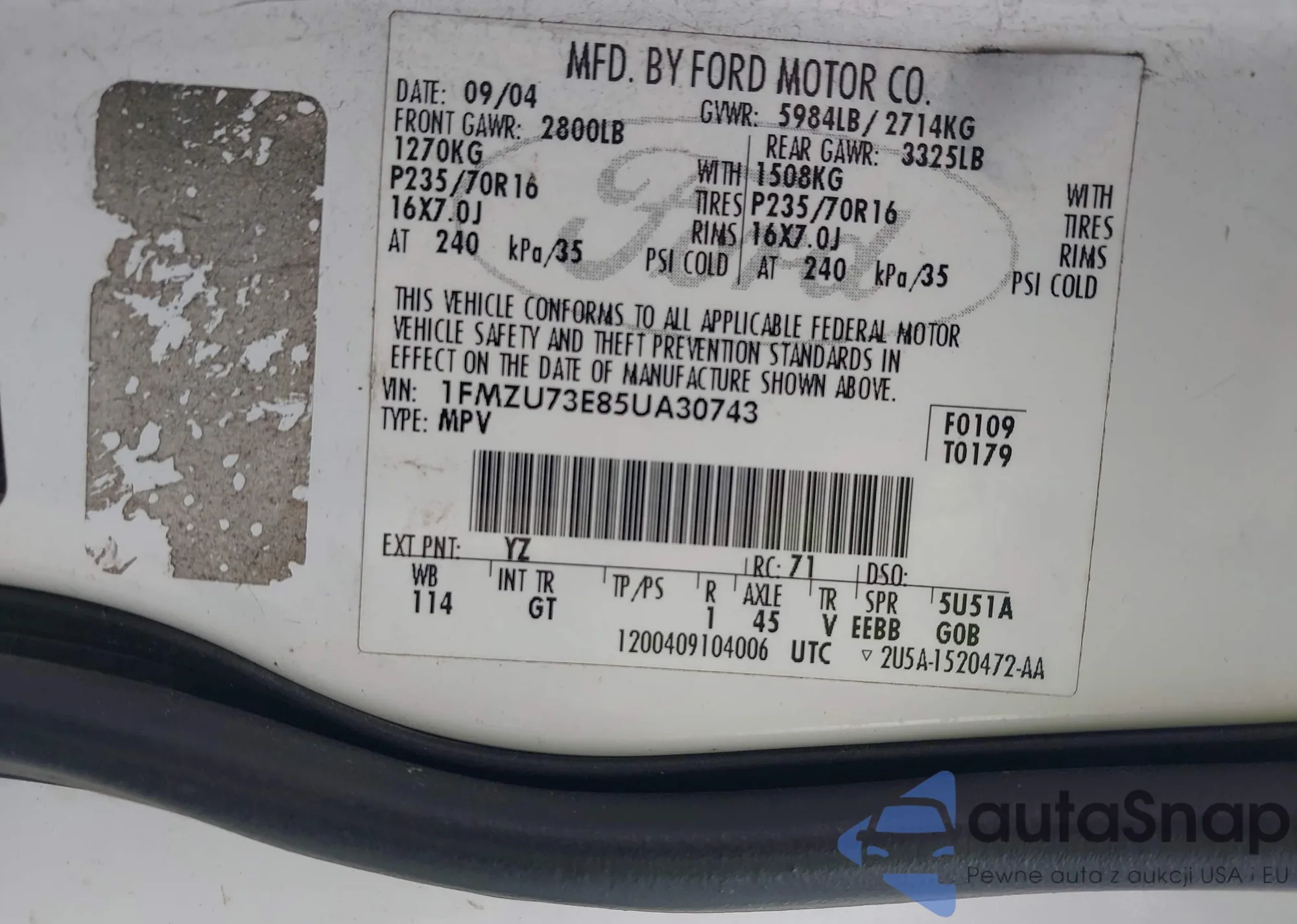 • VIN 4T1BZ1FB4KU009286