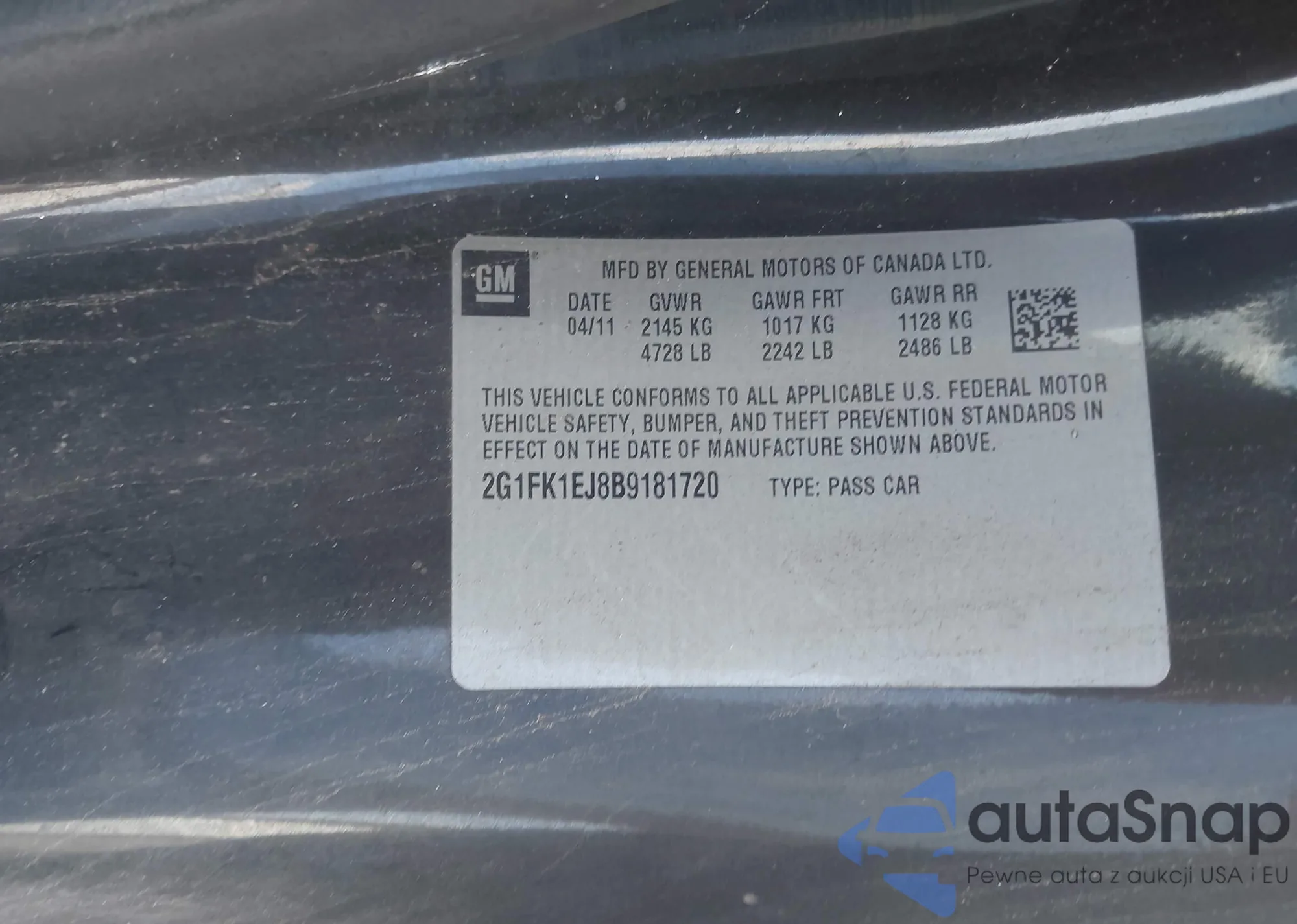• VIN 1G11C5SA9GF128428
