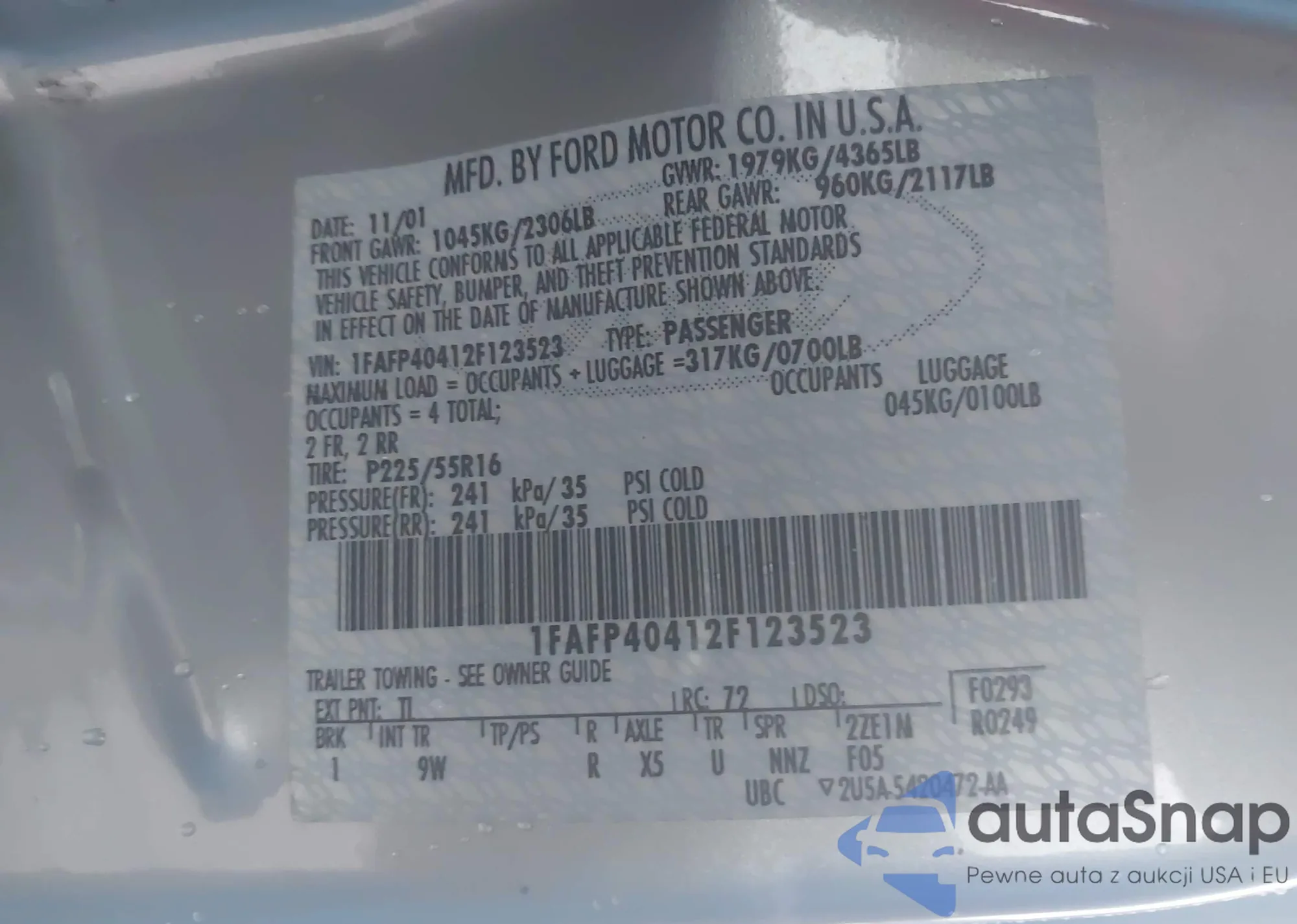 LOT: 44093633 VIN: 1FAFP40412F123523