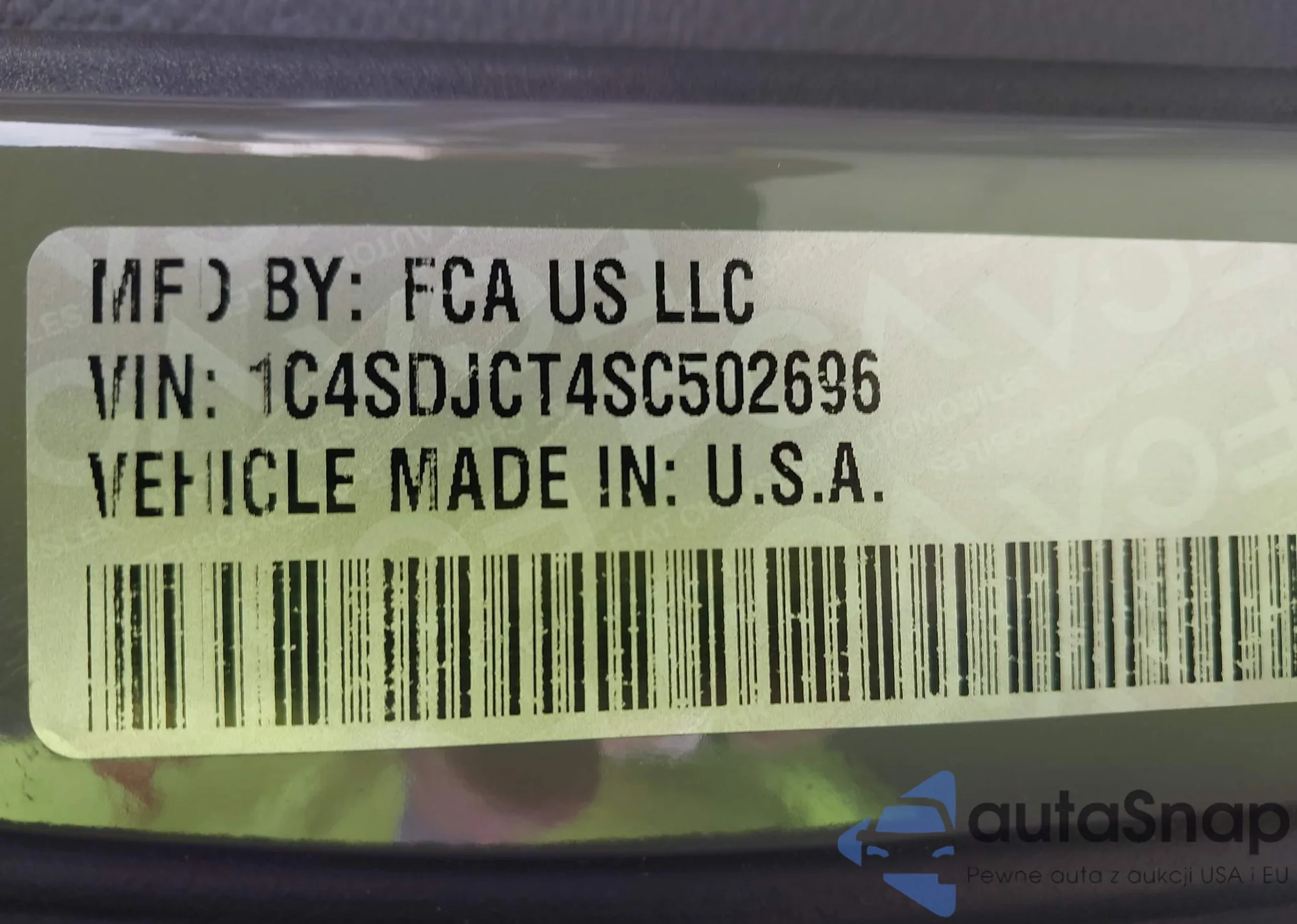 LOT: 43825338 VIN: 1C4SDJCT4SC502696