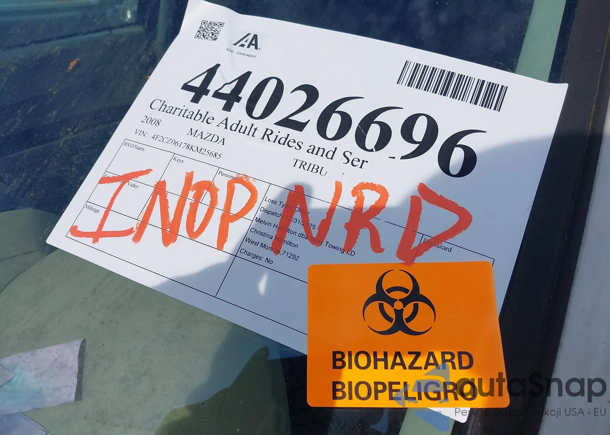 LOT: 44026696 VIN: 4F2CZ06178KM25685