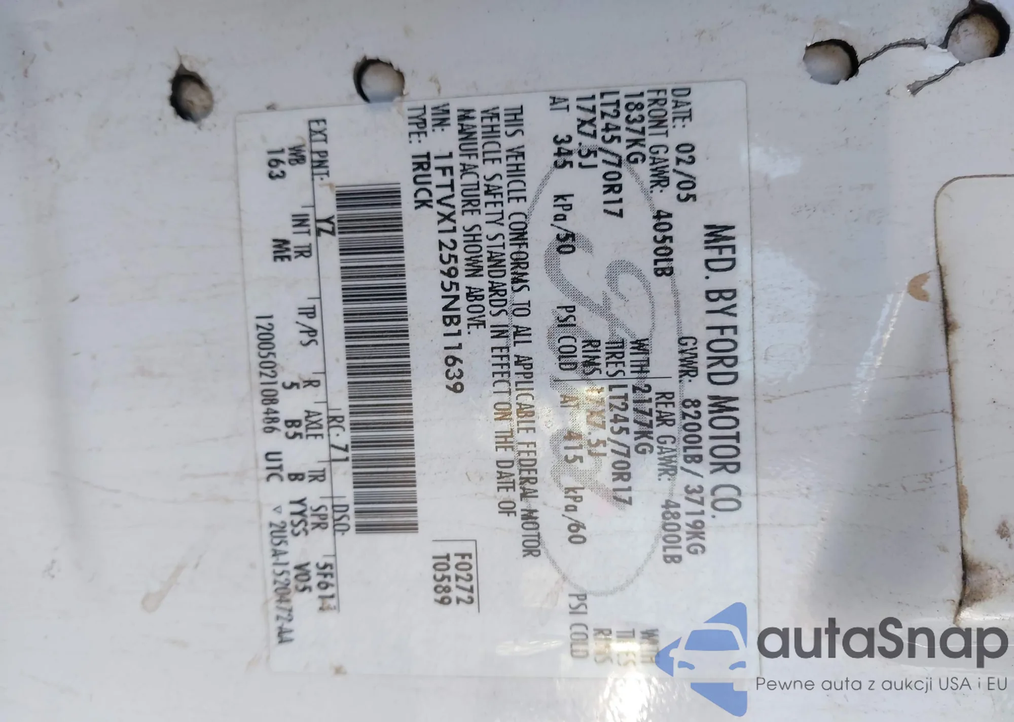 LOT: 44055851 VIN: 1FTVX12595NB11639