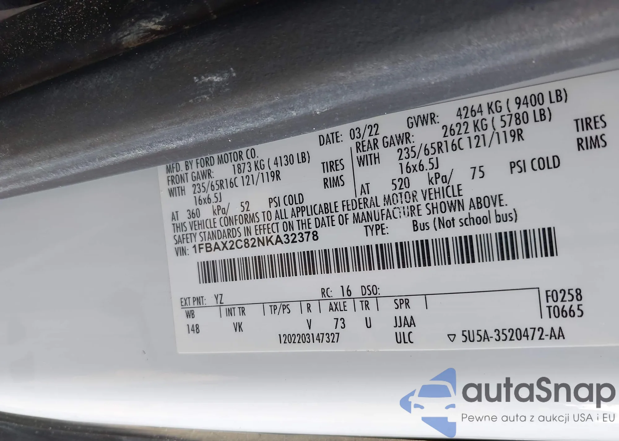 LOT: 44075200 VIN: 1FBAX2C82NKA32378