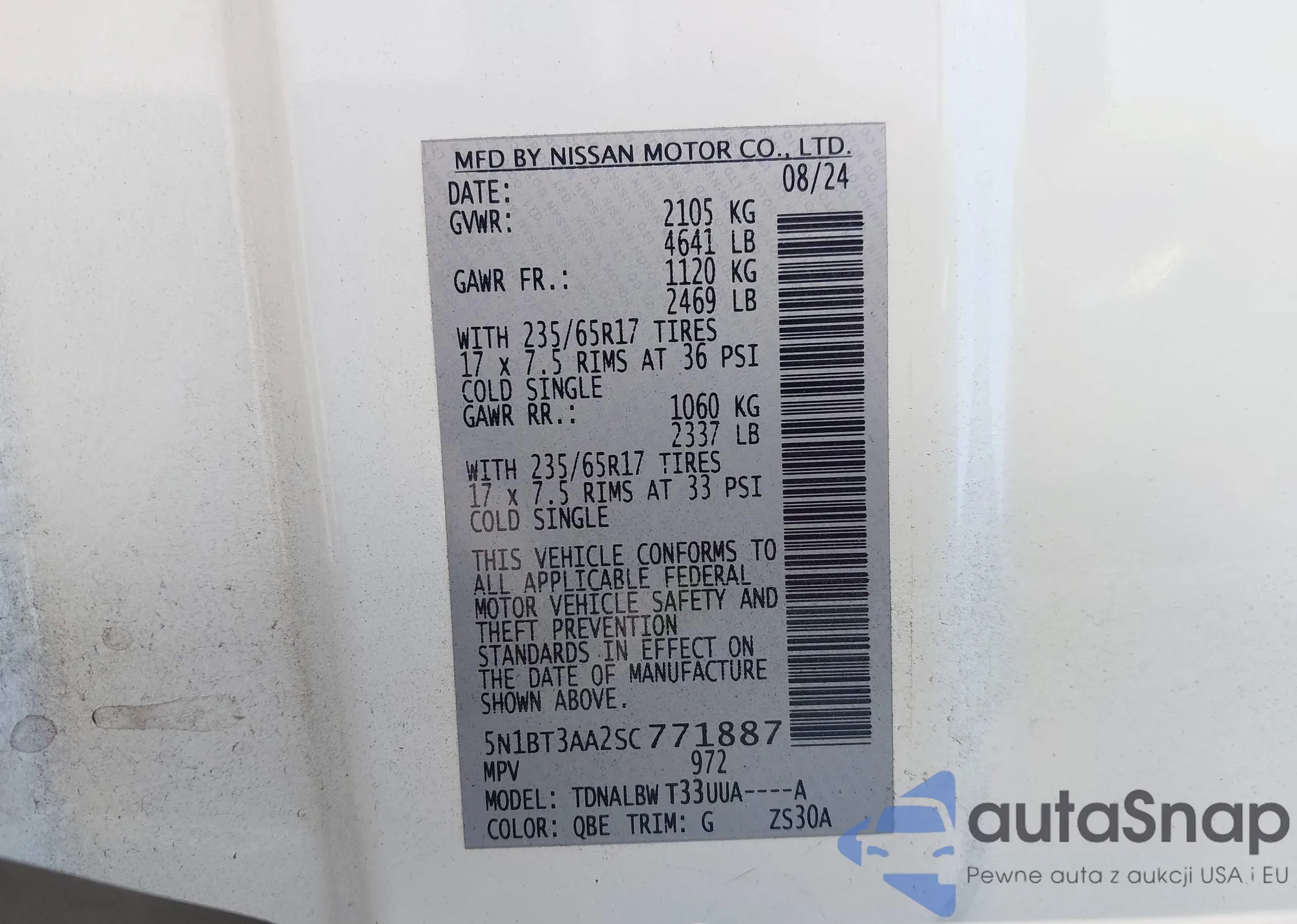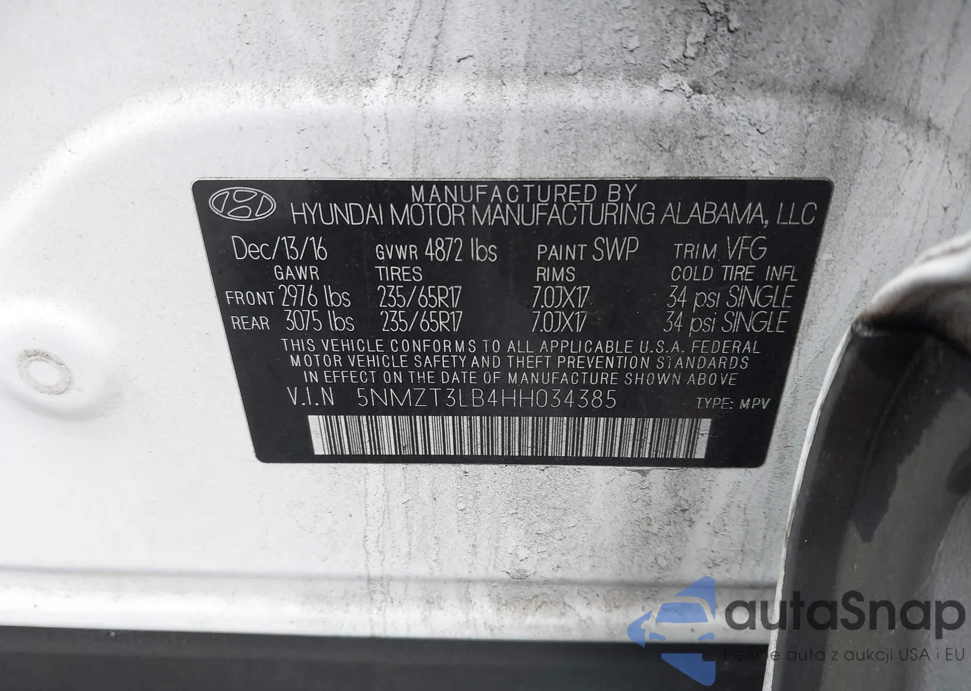 LOT: 43802308 VIN: 5NMZT3LB4HH034385
