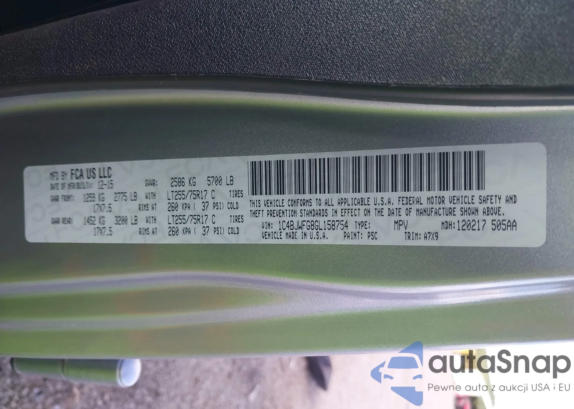 LOT: 43768742 VIN: 1GCCS19X038275239