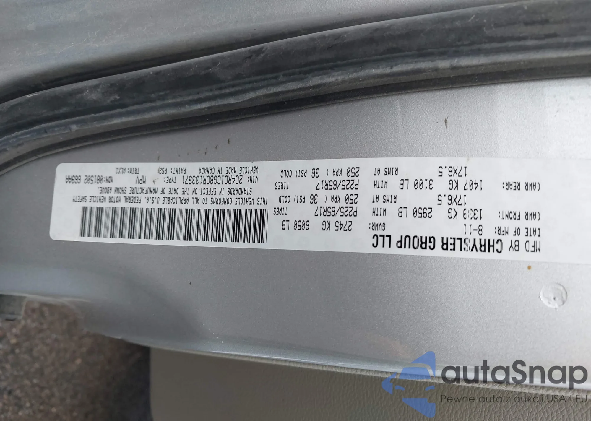 • VIN 2C4RC1CG8CR133371