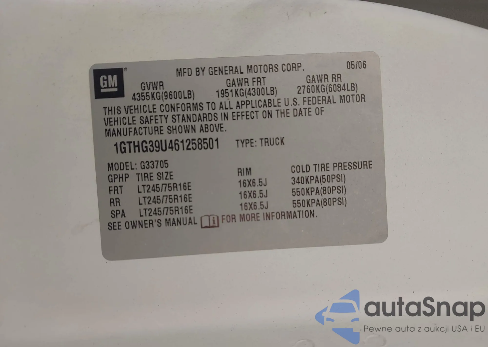 • VIN 1GTHG39U461258501