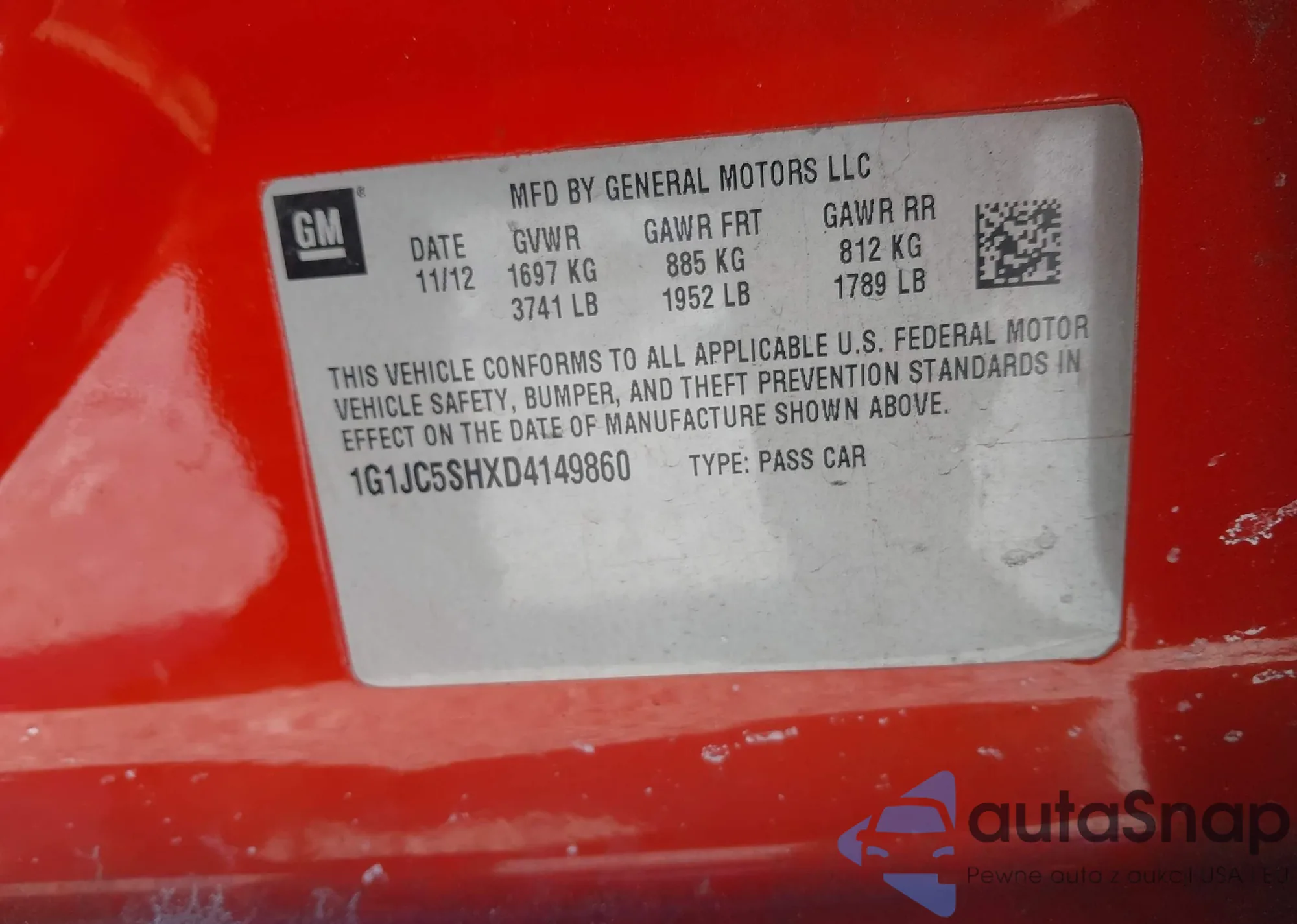 • VIN 1G1JC5SHXD4149860
