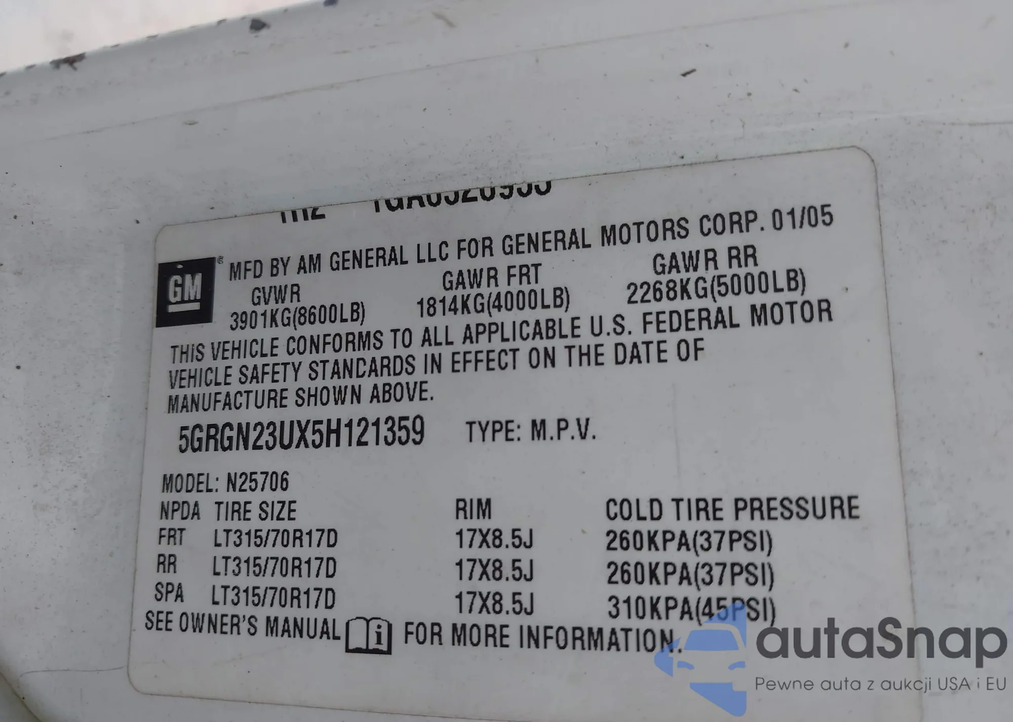 LOT: 44022537 VIN: 1GKDS13S552206638