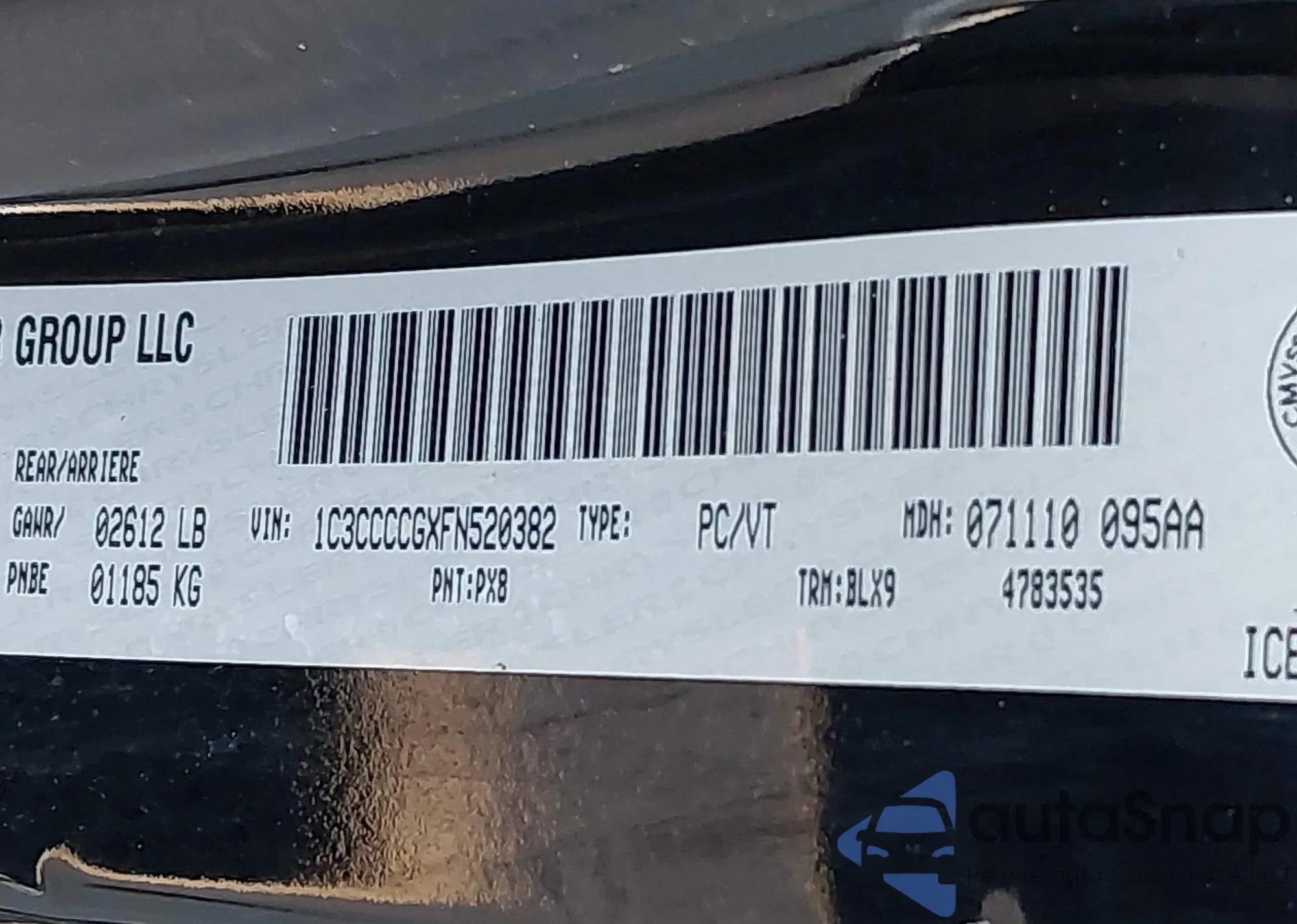 LOT: 43696502 VIN: 1C3CCCCGXFN520382