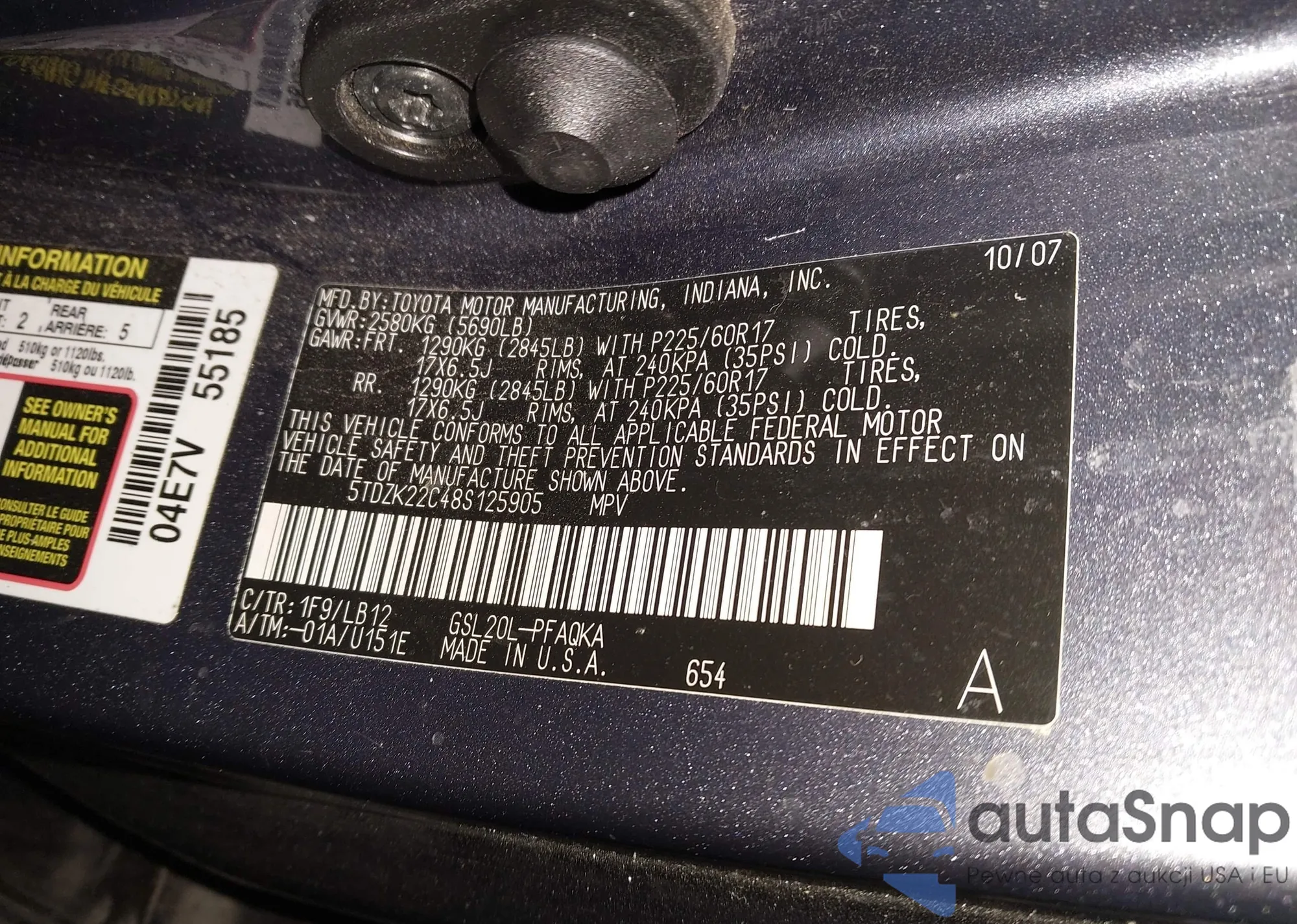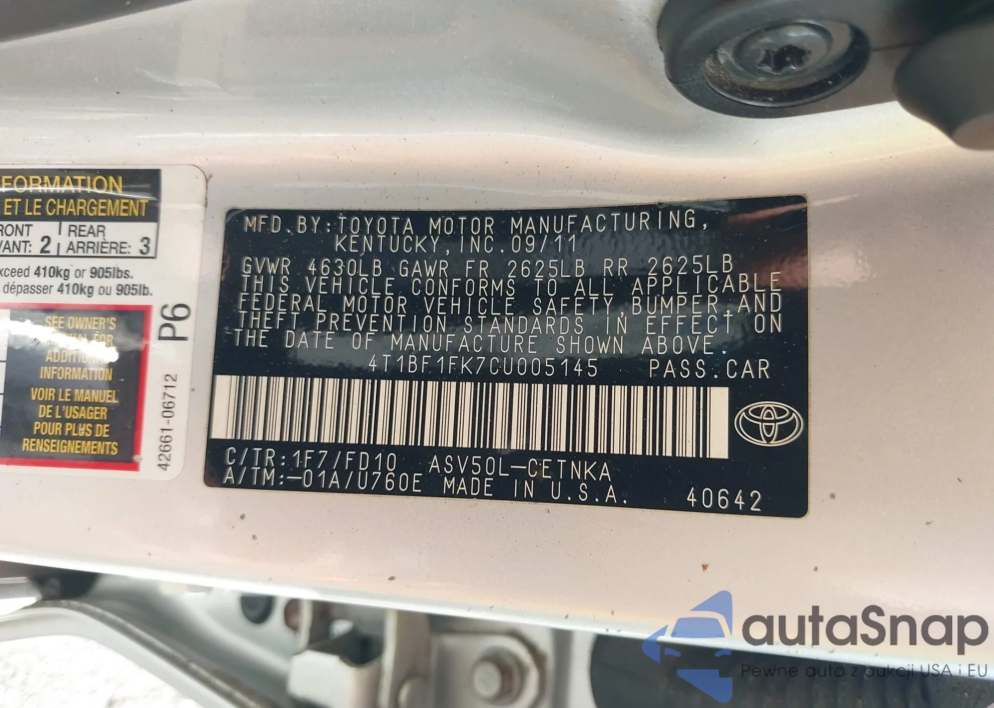 • VIN 4T1BF1FK5FU003639
