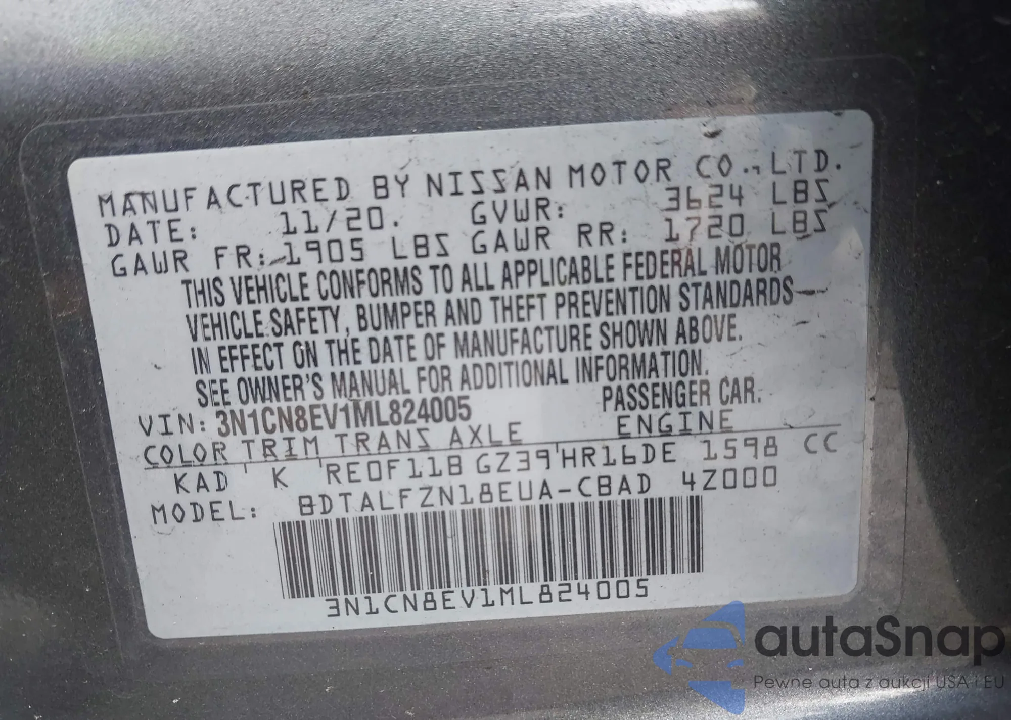• VIN 3N1CN8EV1ML824005