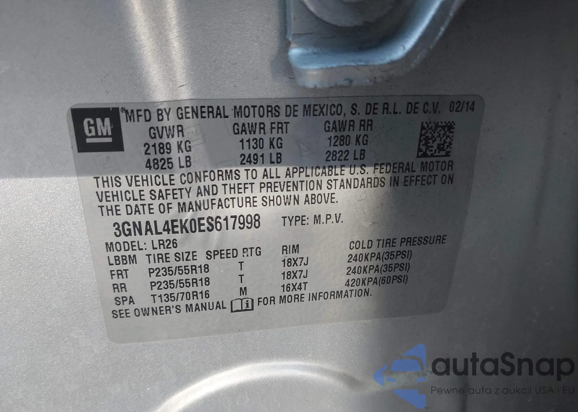 • VIN 3GNCJKSB0FL243329