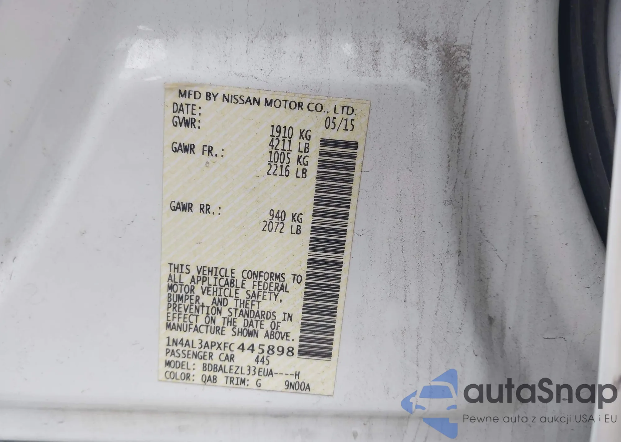 • VIN 1N4AZ1CP8KC317511
