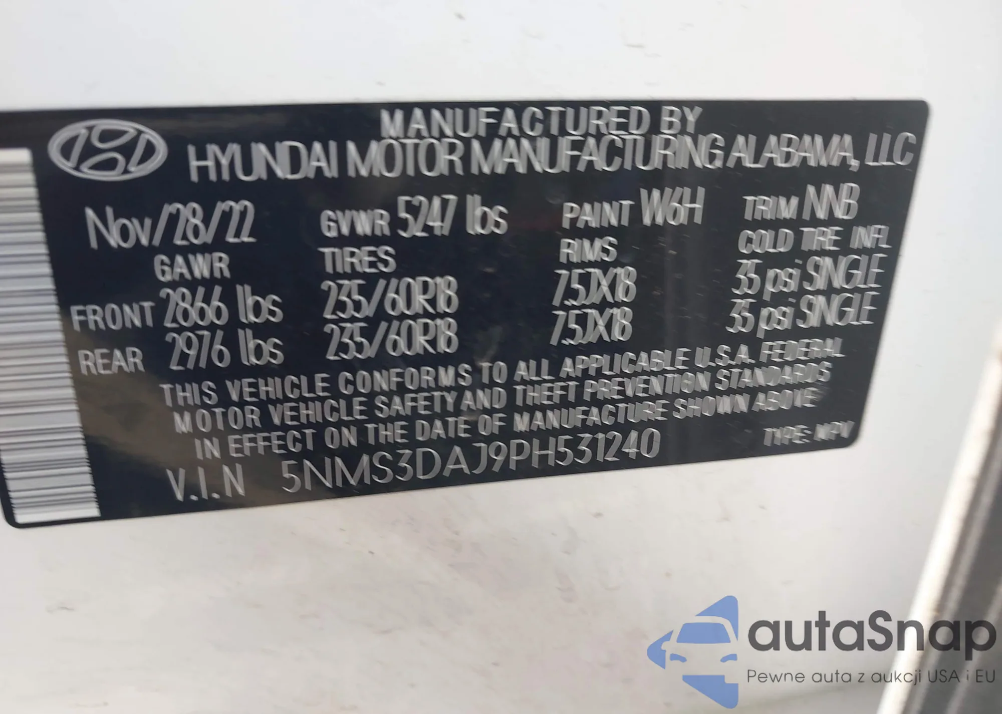• VIN 5NMS3DAJ9PH531240