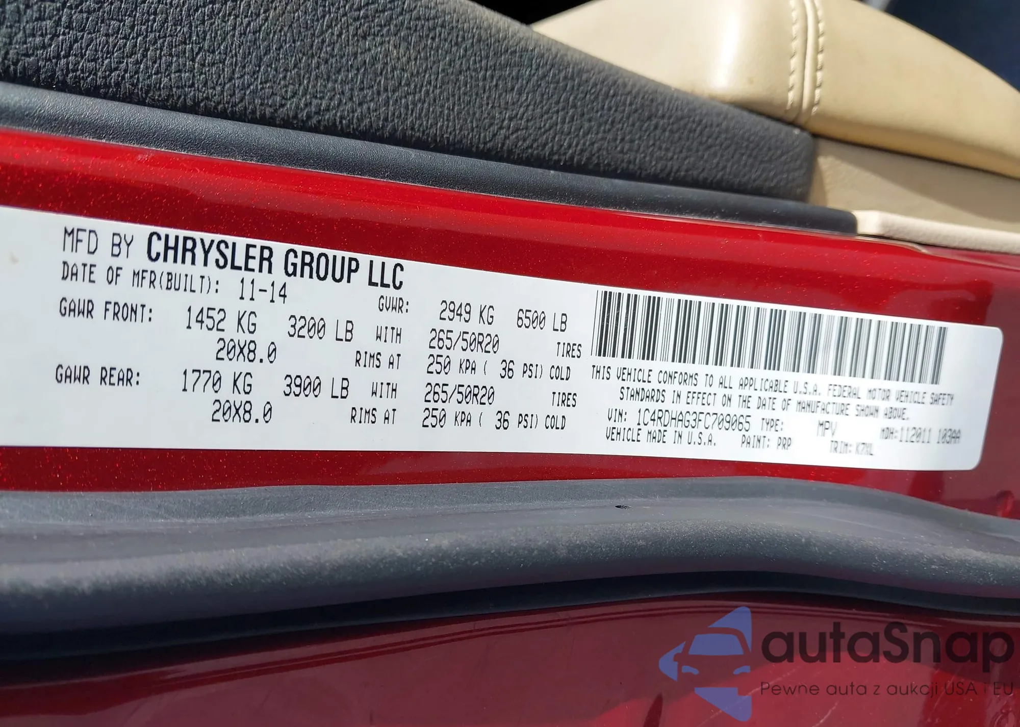 • VIN 1C4RDHAG3FC709065