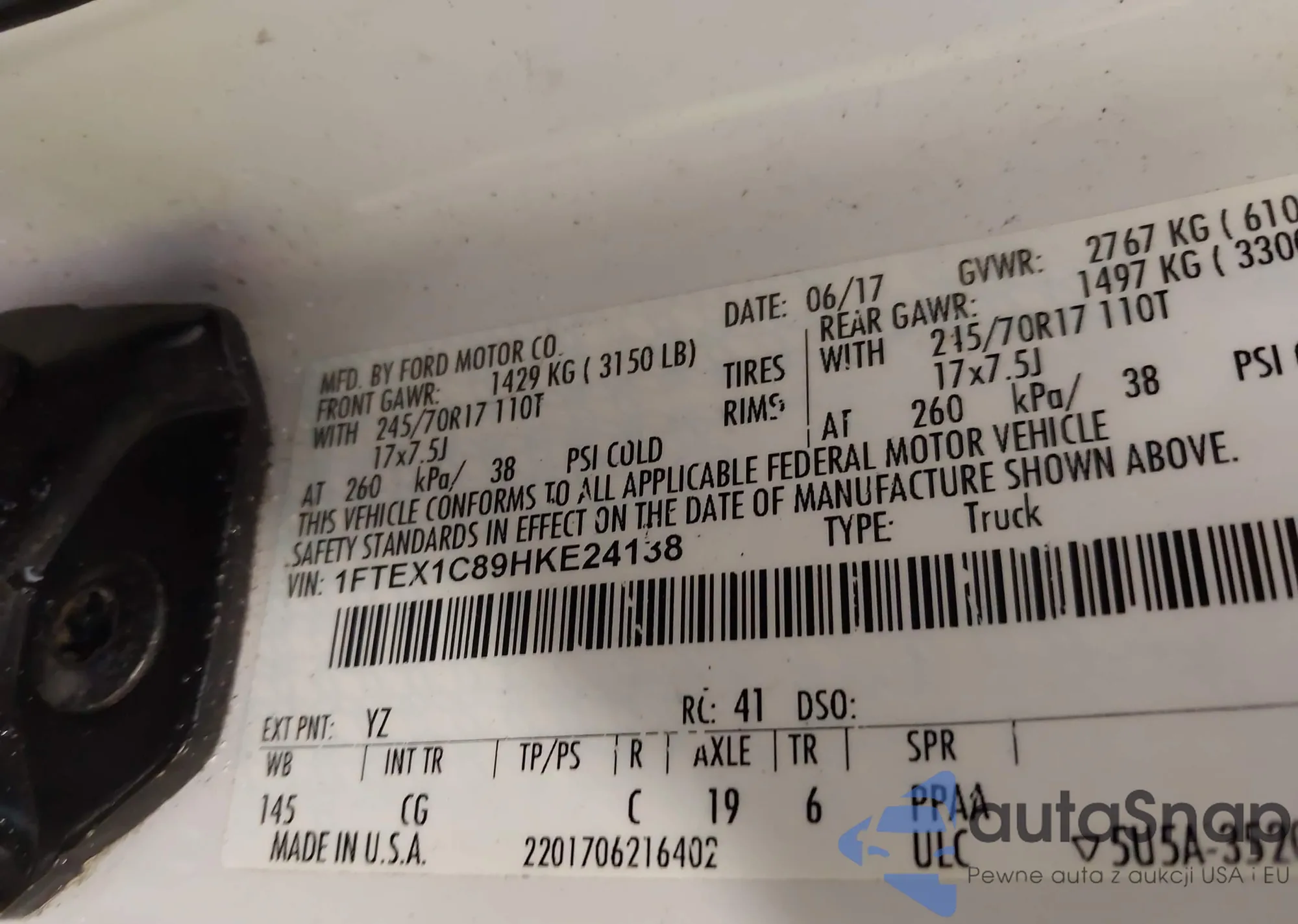 LOT: 43852019 VIN: 1FTEX1C89HKE24138
