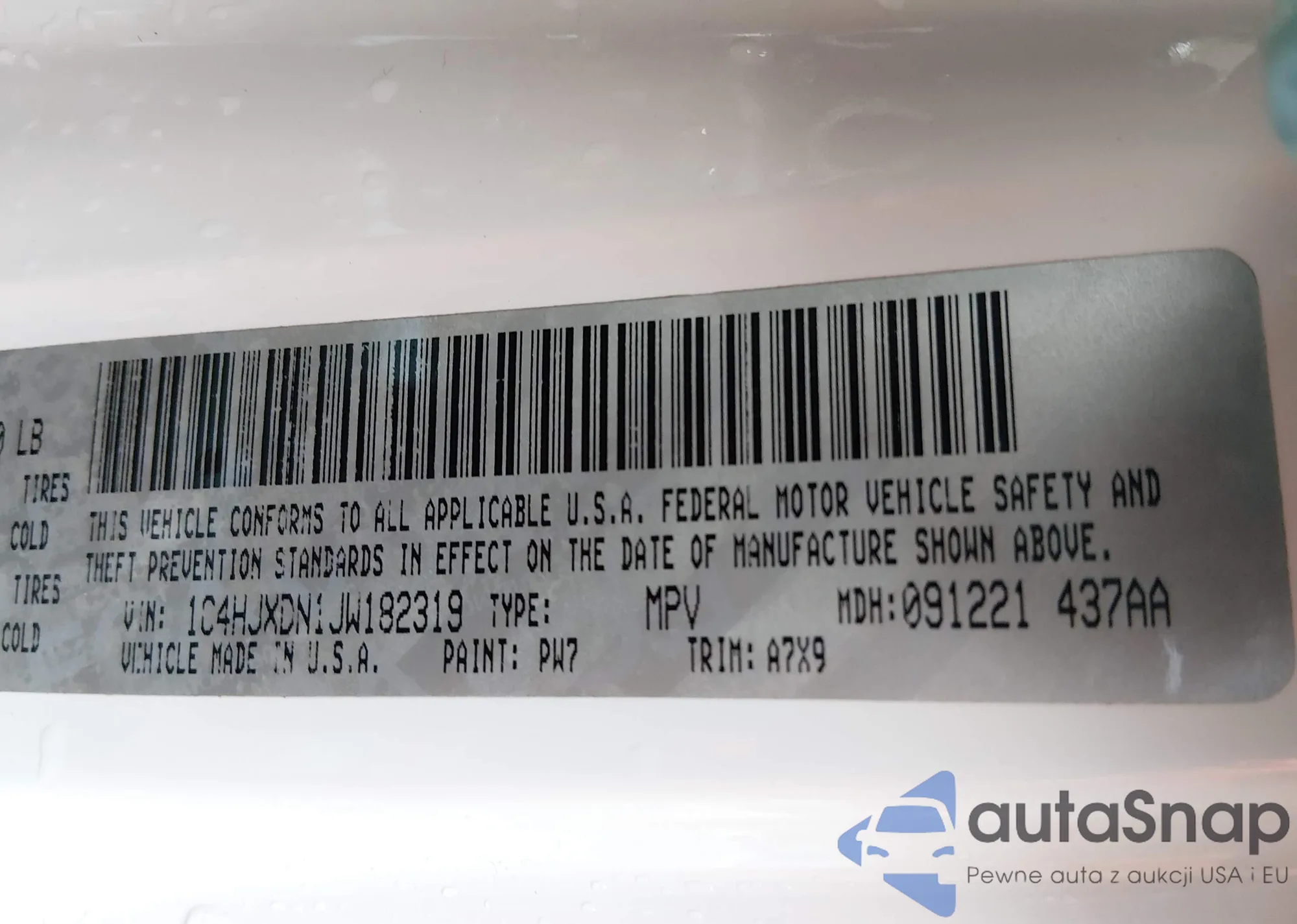 • VIN 1C4HJXDN1JW182319