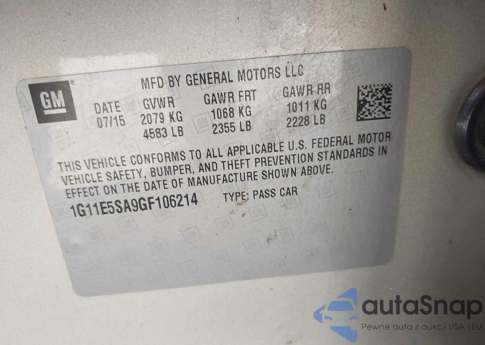LOT: 44009515 VIN: 1G11E5SA9GF106214