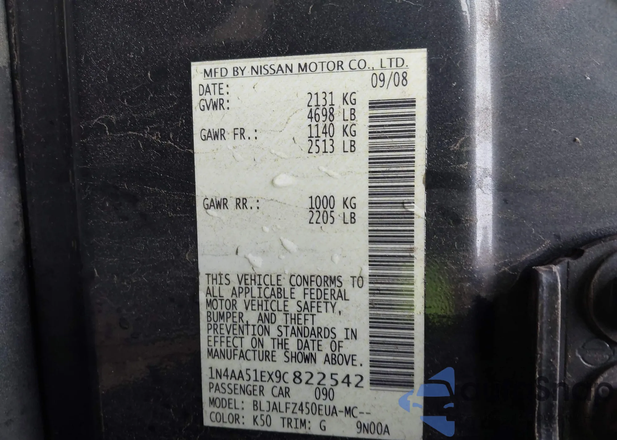 LOT: 44011709 VIN: 1N4AA51EX9C822542