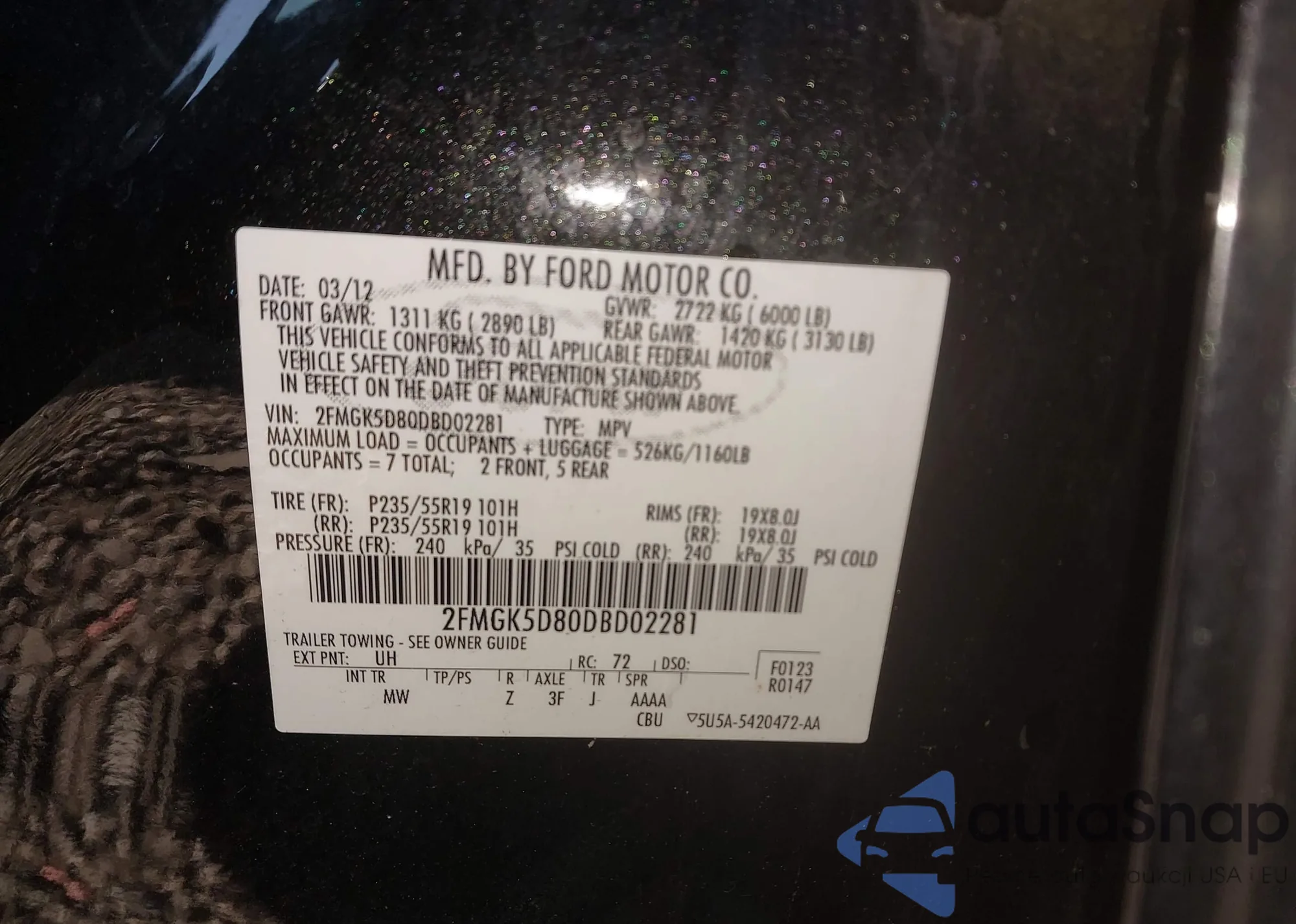 LOT: 43734897 VIN: 5XYPG4A35KG534781