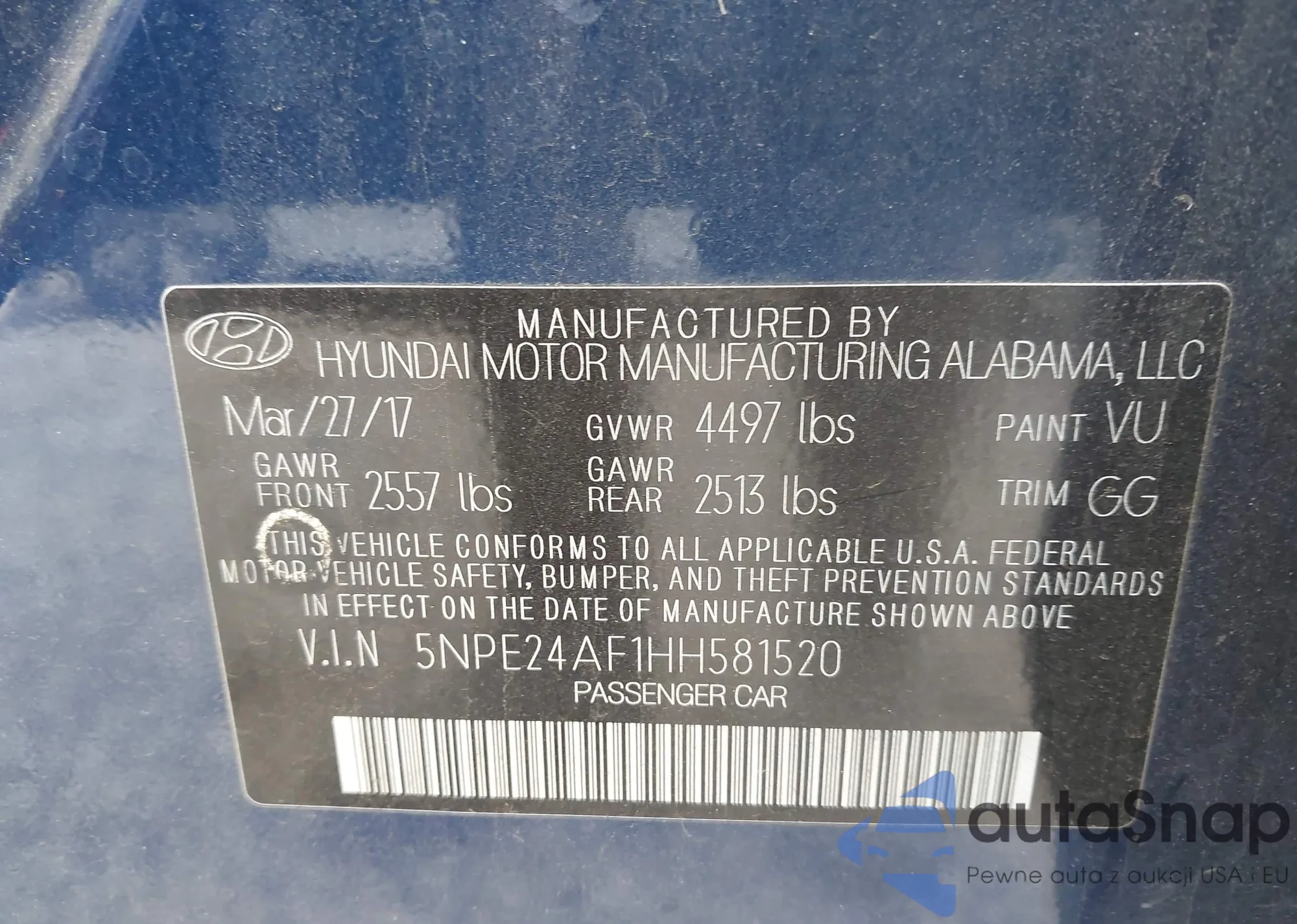 • VIN 5NPE24AF1HH581520