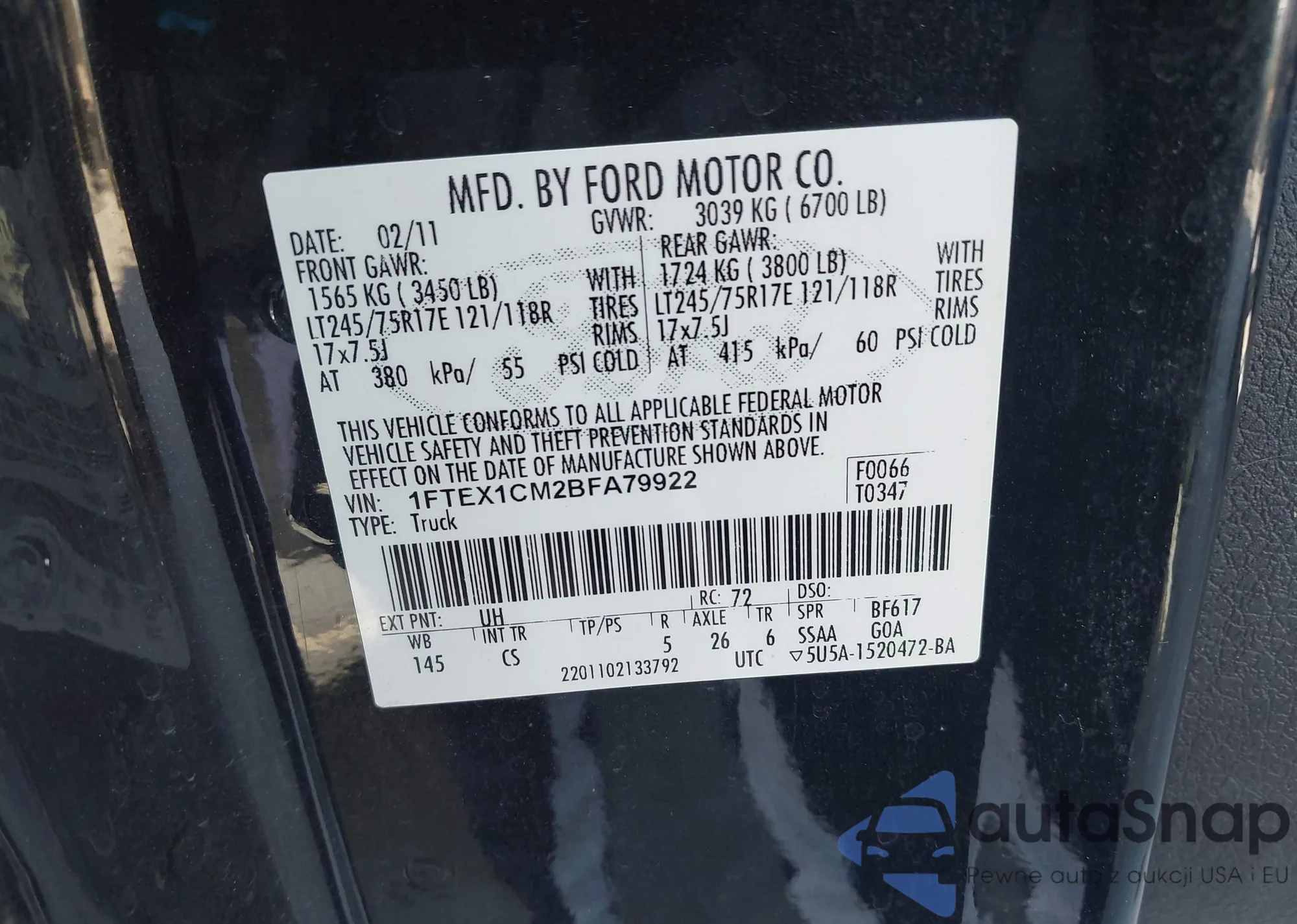 LOT: 43981913 VIN: 1FTEX1CM2BFA79922