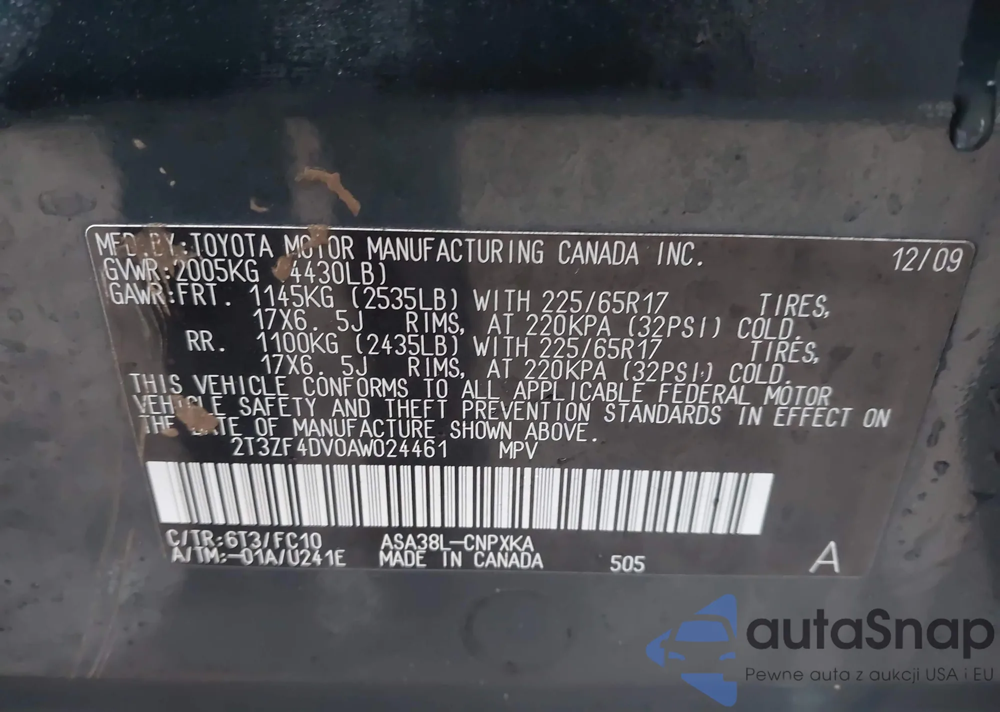 LOT: 44003502 VIN: 2T3ZF4DV0AW024461