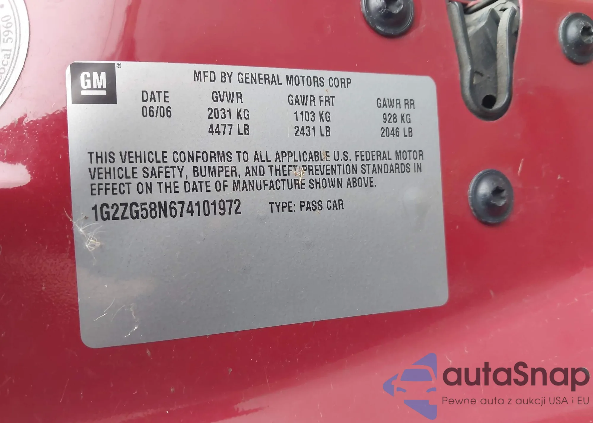 • VIN 1G2ZG58N674101972