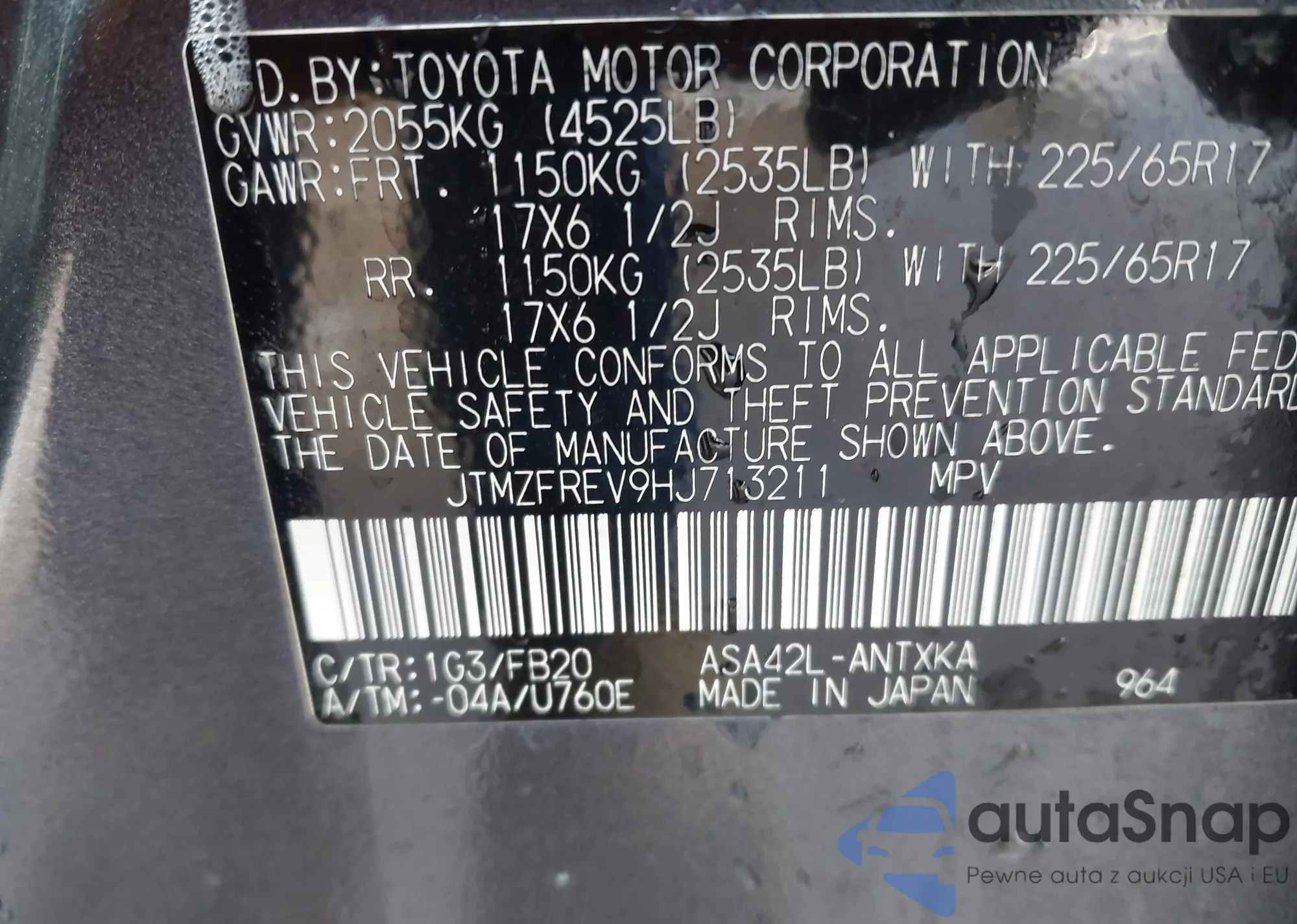 • VIN 4T1B11HK3JU530843