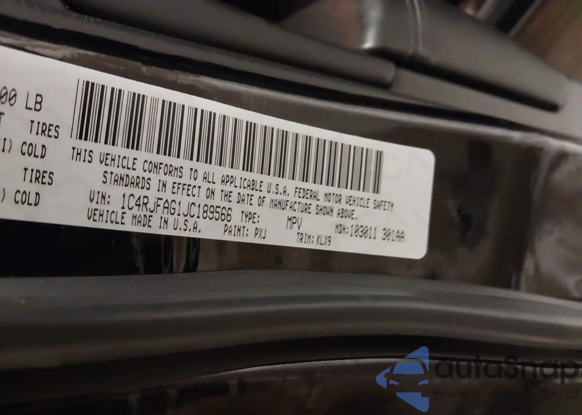• VIN 1C4RJFAG1JC189566