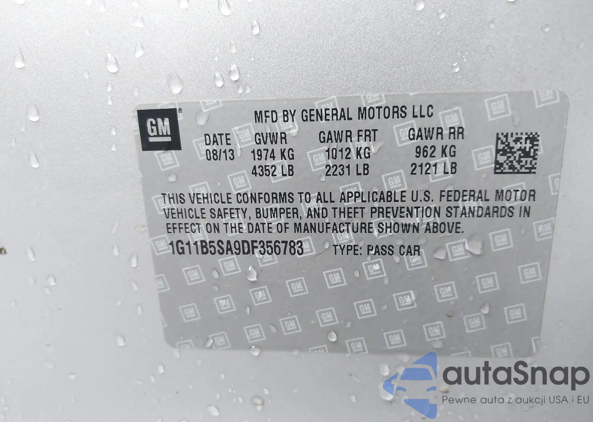 LOT: 43641130 VIN: 1G1PA5SH9D7172934