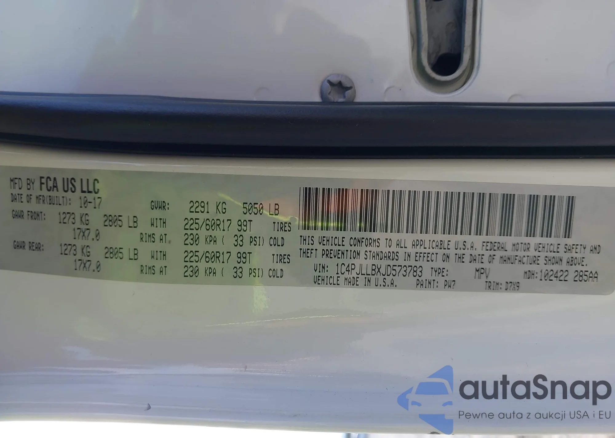 LOT: 44043953 VIN: 1C4PJLLBXJD573783