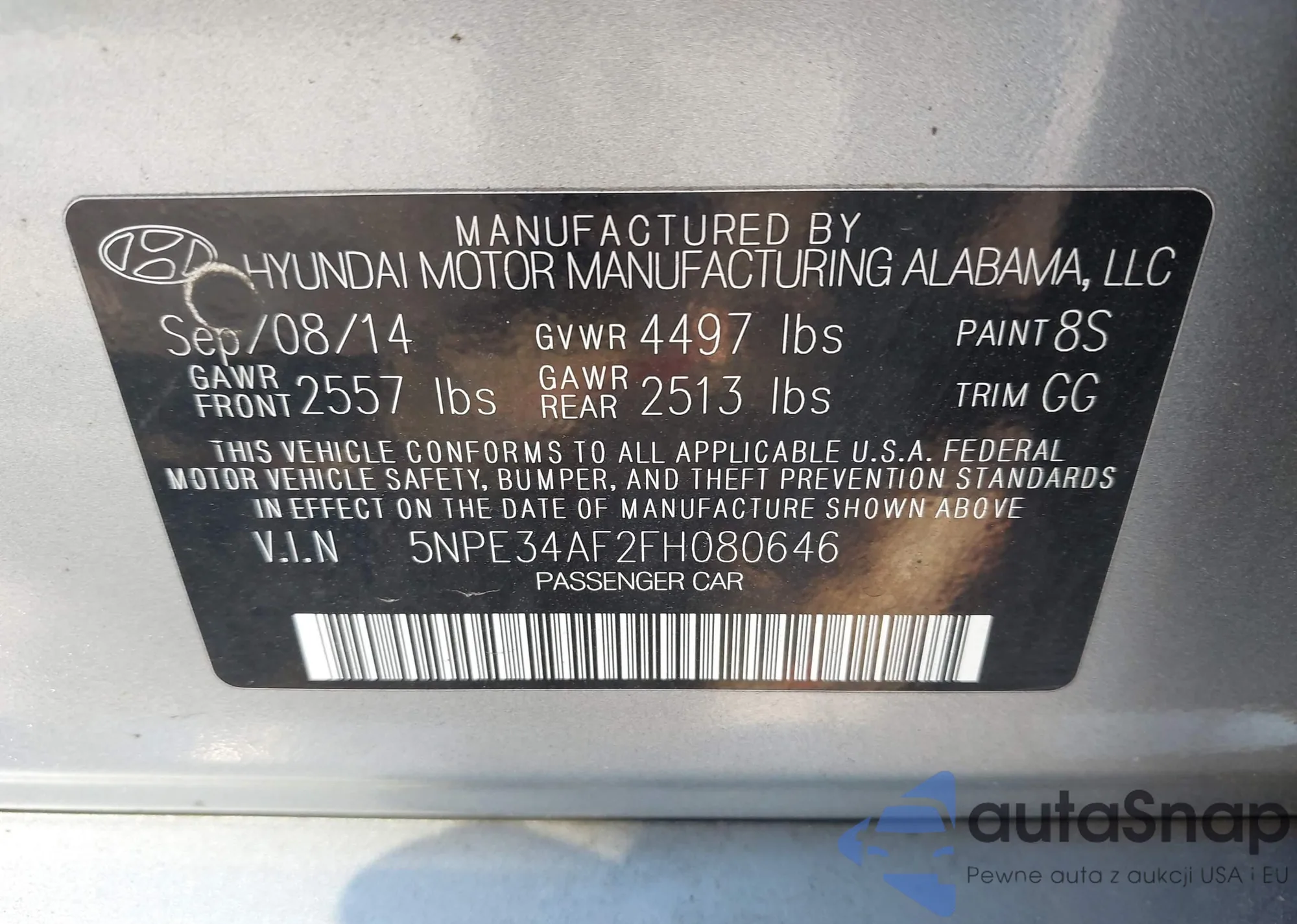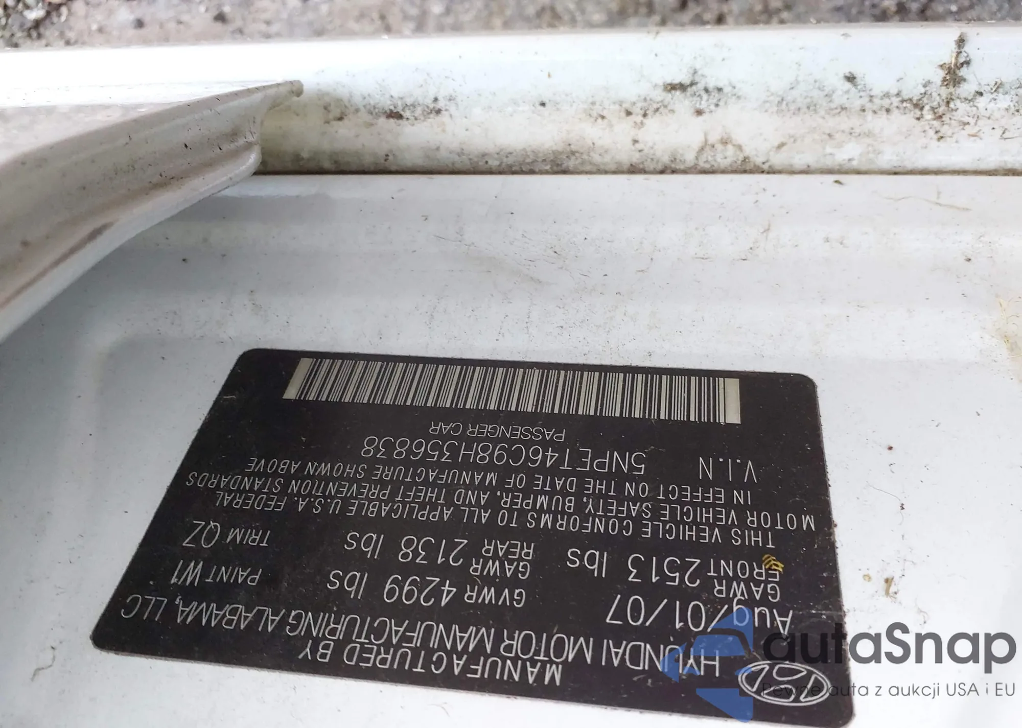 LOT: 44003992 VIN: 5NPET46C98H356838
