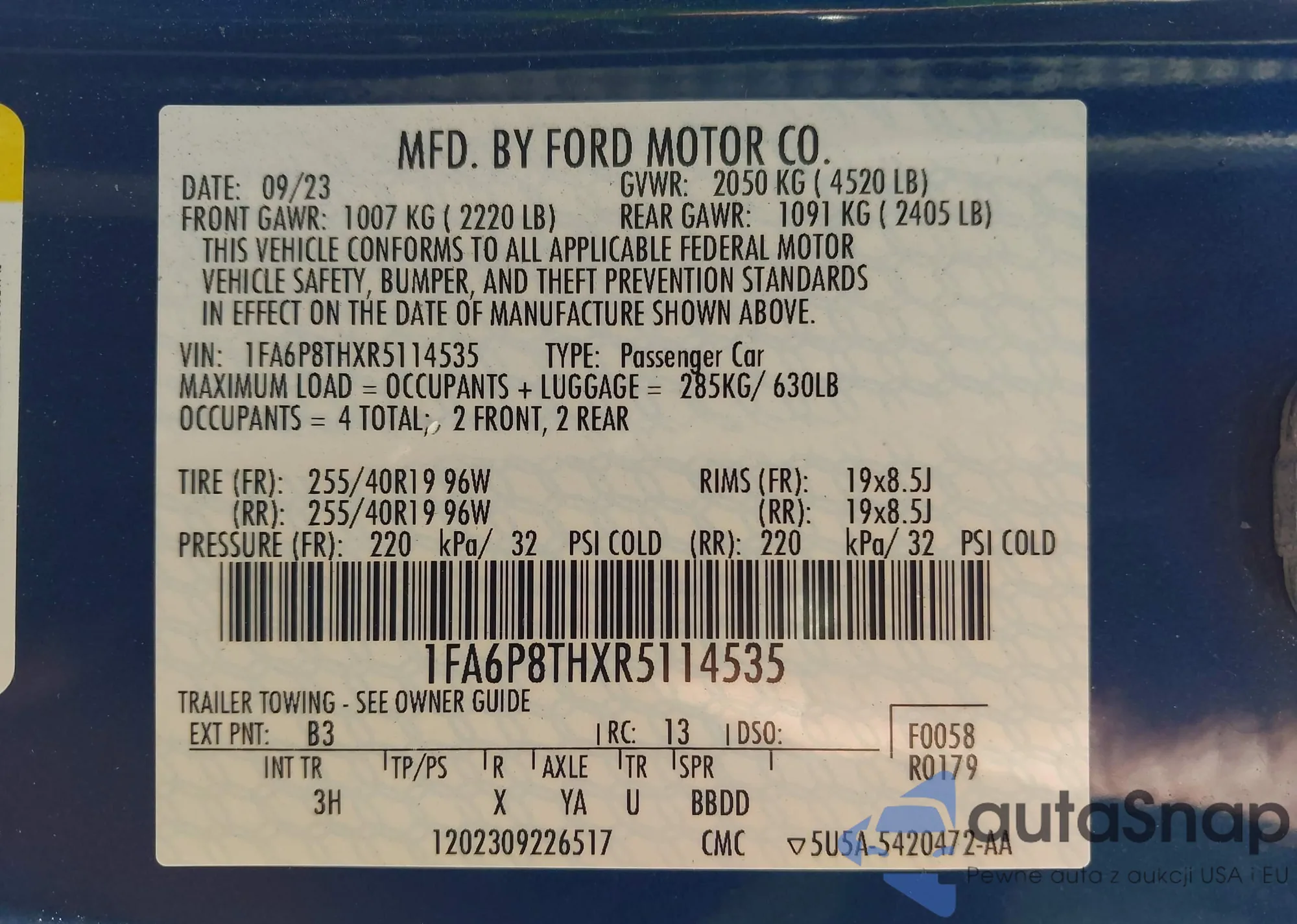 • VIN 1FA6P8THXR5114535