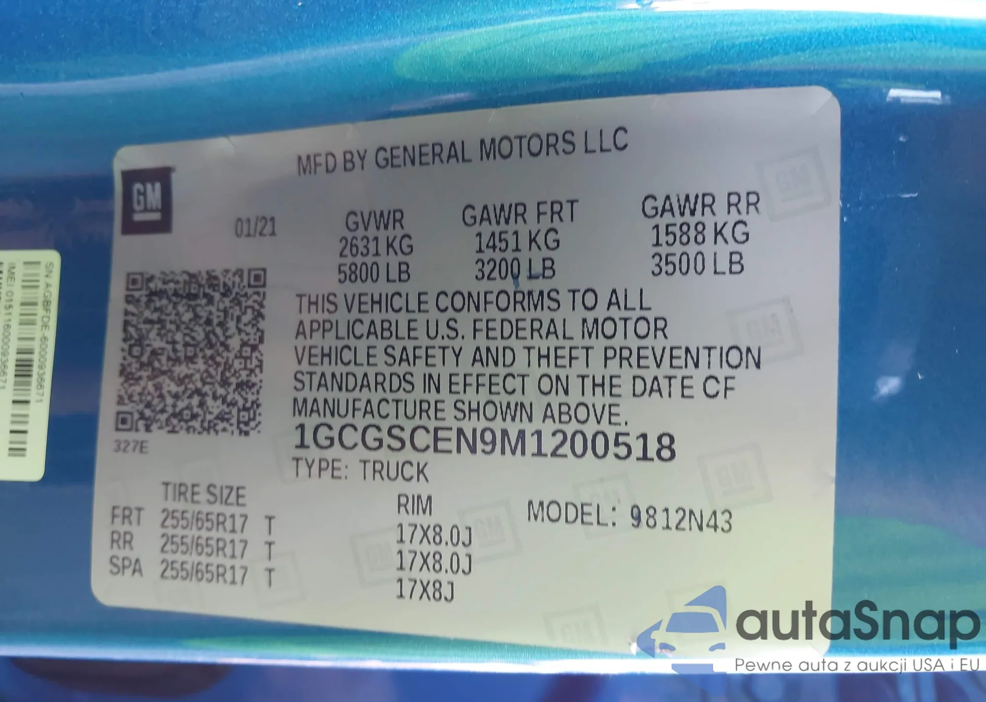LOT: 43519315 VIN: 1GCGSCEN9M1200518