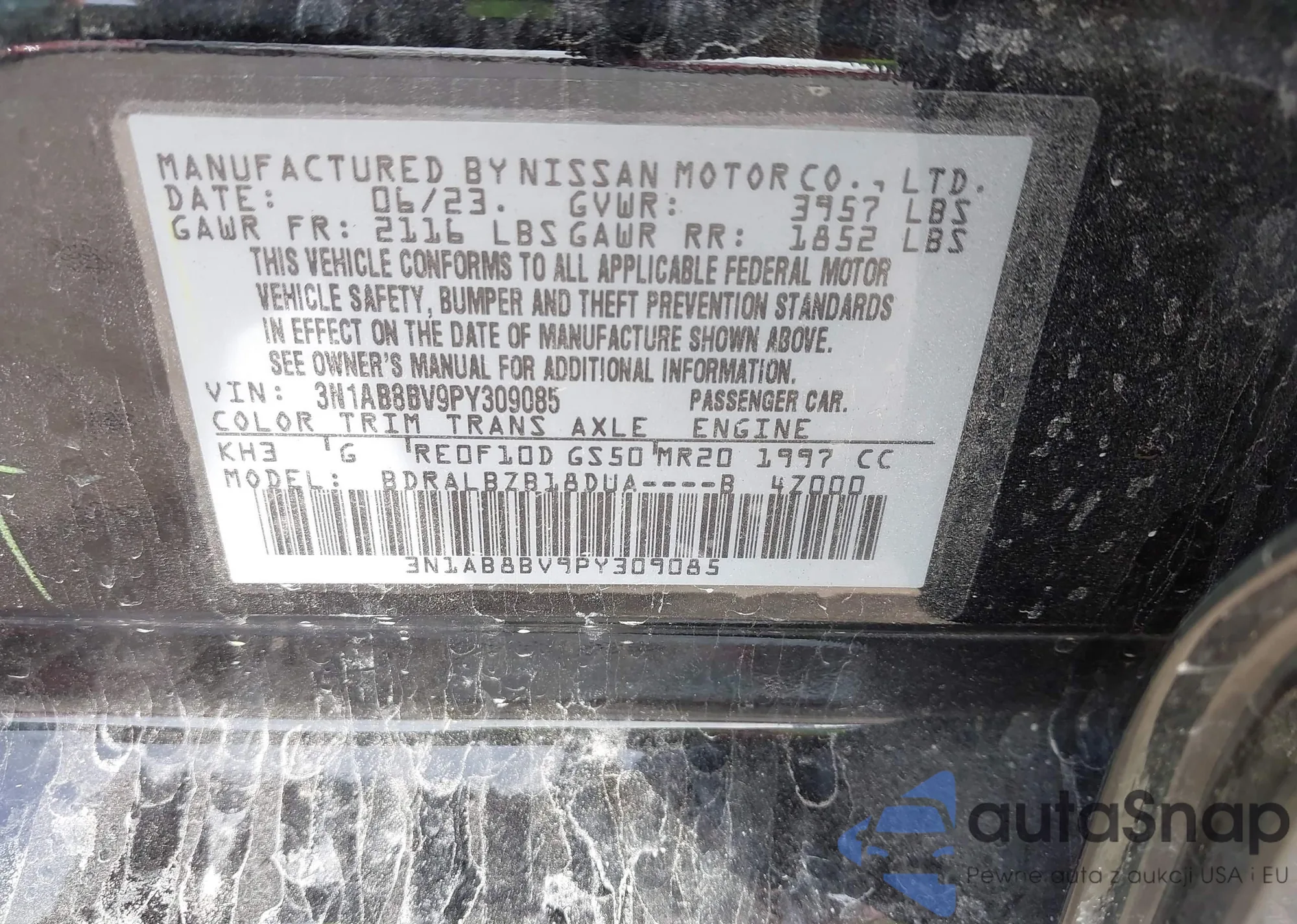 LOT: 43527599 VIN: 3N1AB8BV9PY309085