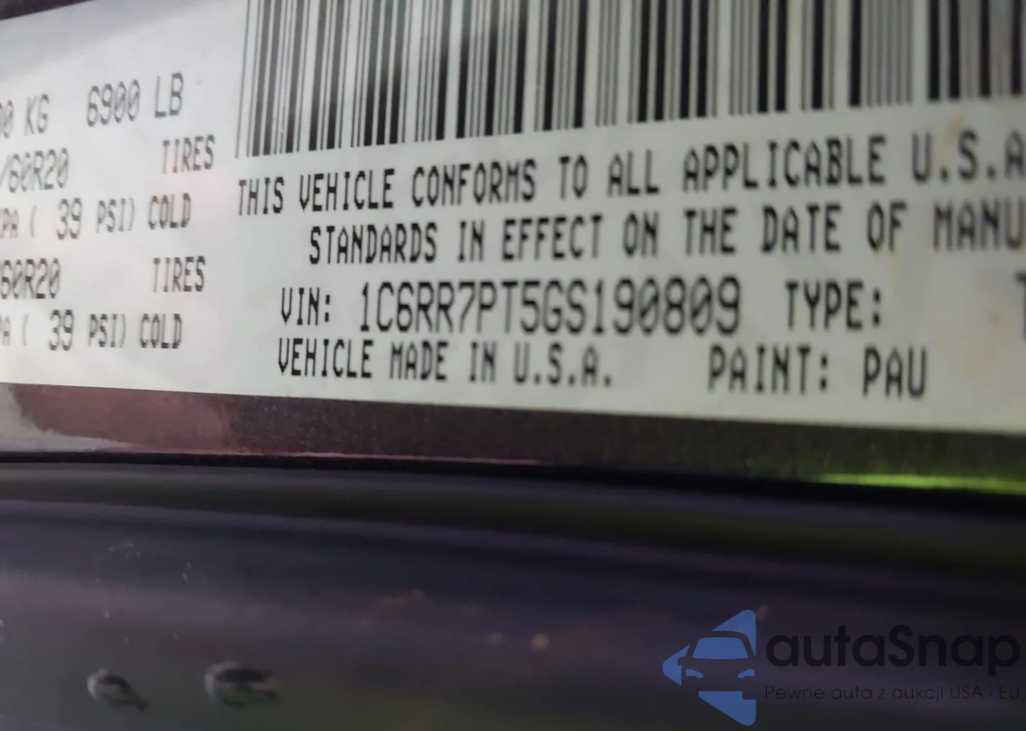 • VIN 1C6RR7PT5GS190809