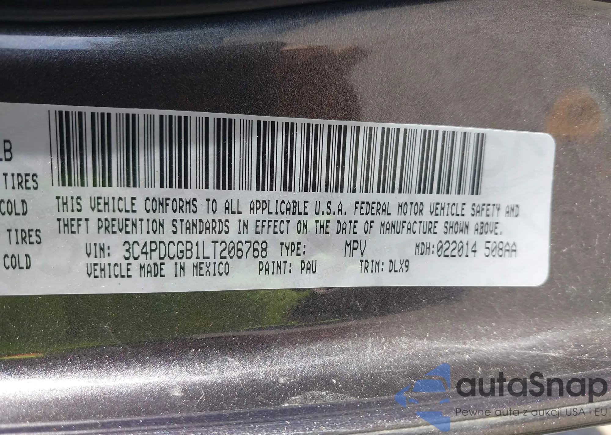 • VIN 3C4PDCGB1LT206768