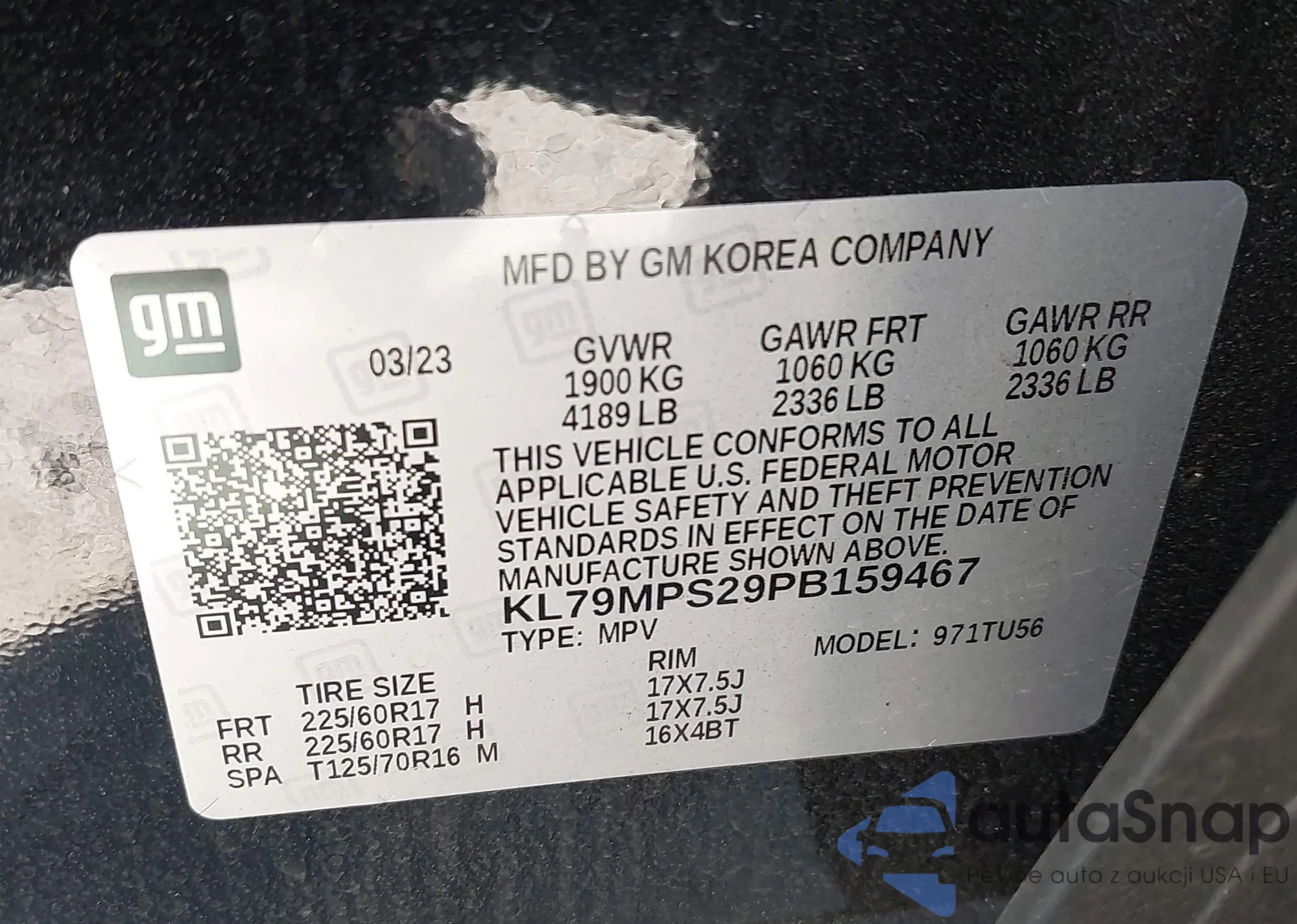 • VIN KL79MPS29PB159467
